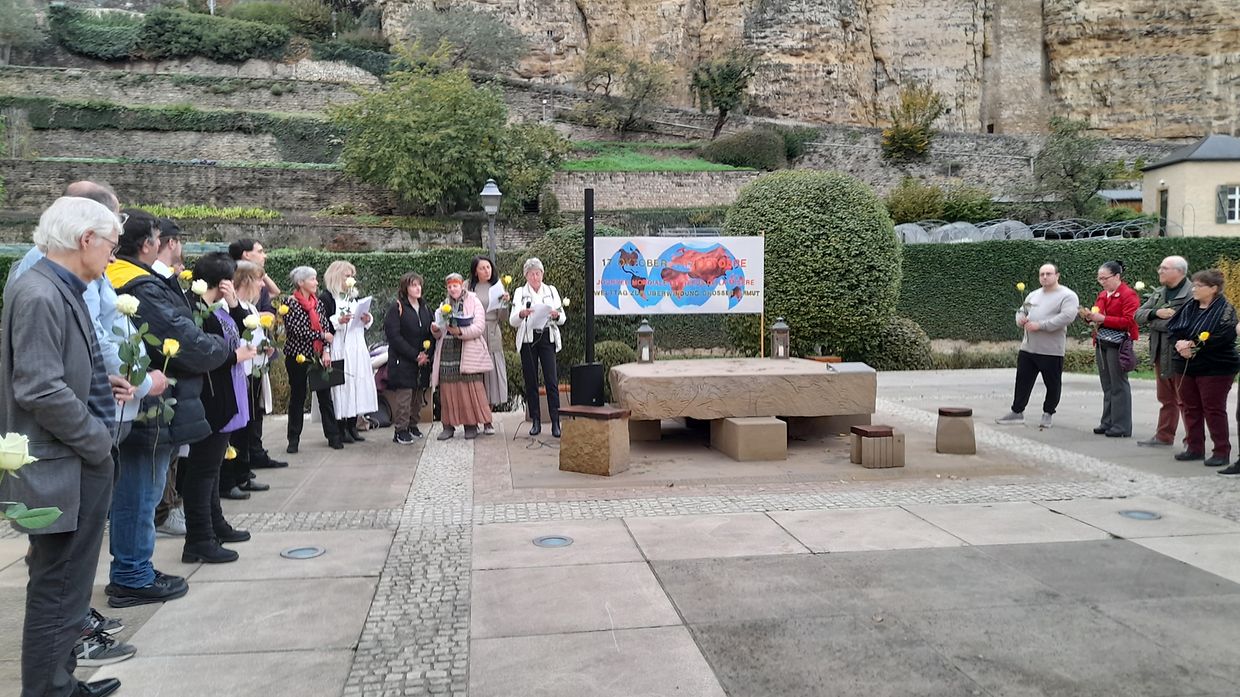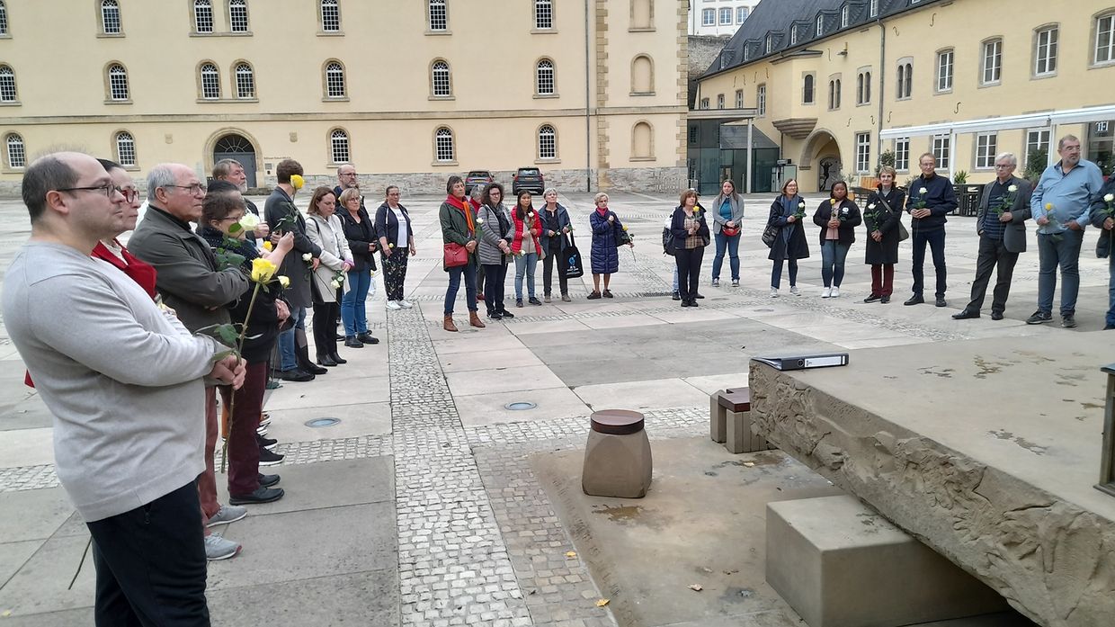 Pour les personnes rassemblées autour de la table de la solidarité sur le parvis du CCRN, la présidente du Mouvement ATD Luxembourg a repris le message déjà lancé le 17 octobre 2000 par des personnes vivant en précarité, et qui reste actuel aujourd’hui : « Il faut essayer de construire l’union entre les nations. Il faut tout faire pour éviter les guerres. Ce n’est pas la faute des pauvres, mais ce sont surtout les pauvres qui en souffrent…Construire la paix veut dire permettre à tout le monde de vivre ses droits en liberté. Nous devons garantir à chaque personne, quel que soit le lieu où elle vit sur terre, un minimum d’aisance et de bien-être…Pour construire la paix, nous avons besoin de force et d’espoir… » Ces mots ont été suivi par une minute de silence et comme geste symbolique, chacun a déposé une rose sur la Table Publica en signe de paix et de solidarité dans le monde entier - et surtout en souvenir de ceux qui ont le plus souffert de la guerre et de la violence ou qui en sont morts.