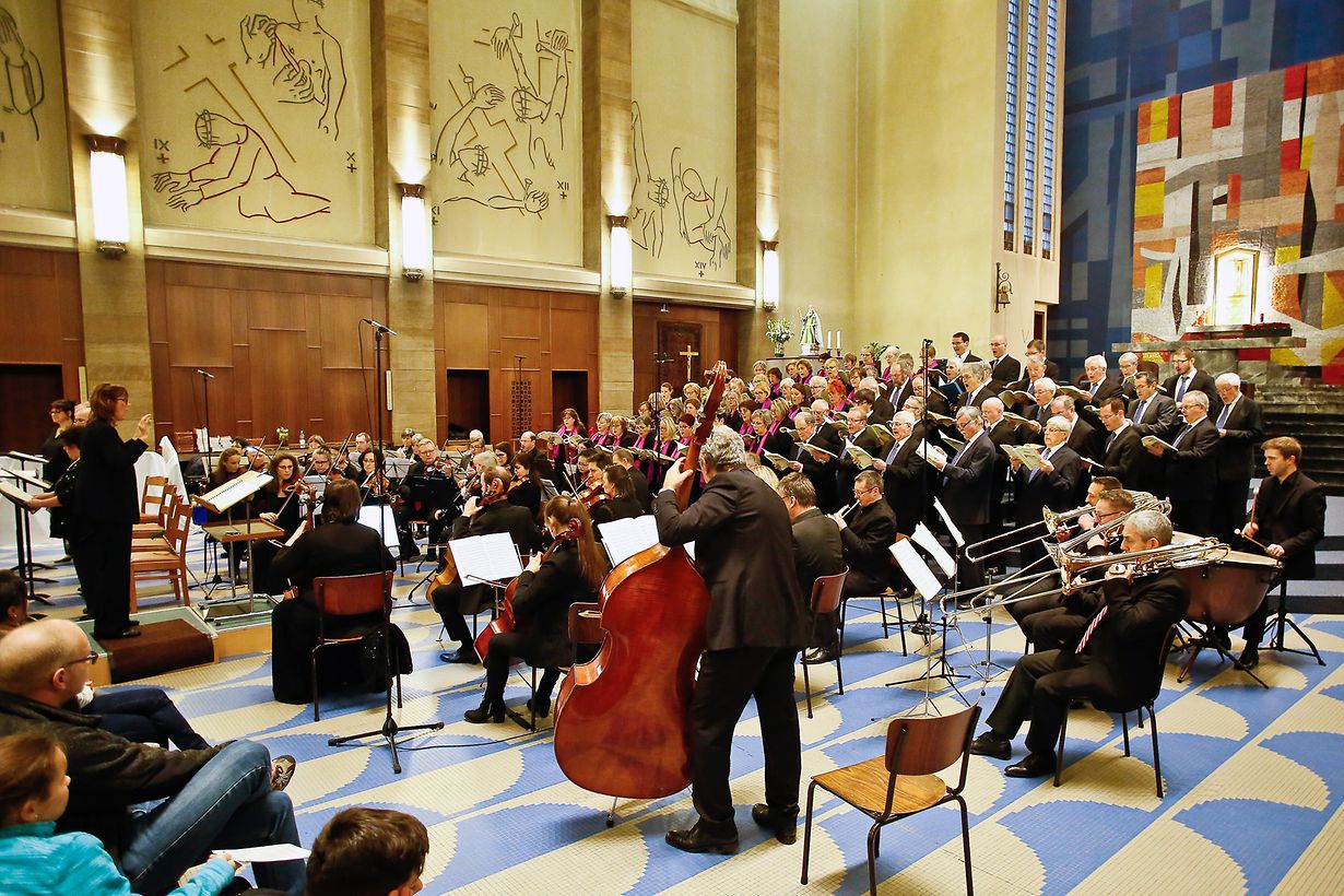 Das jährliche geistliche Konzert der Chorale Mixte du Conservatoirre de la Ville de Luxembourg stellt einen Höhepunkt auf dem kulturellen Kalender der Hauptstadt dar. Dieses Jahr hat Dirigentin Nancy Back-Kelsen ein Werk ausgewählt welches 1837 in der Kirche Santa Maria la Nova in Neapel uraufgeführt wurde, danach aber 140 Jahre lang in einer Museumsschublade schlummerte. Gaetano Donizetti ist als Opernkomponist des Belcanto bekannt , hat aber auch in Punkto Kirchenmusik großes geleistet. Seine Messa di Gloria e Credo ist das einzige bis heute bekannte Werk dieser Art wobei das moralische Tief des Komponisten der im Jahre 1837 den Tod seiner Eltern, seiner Ehefrau und zweier Kinder beklagte ausschlaggebend gewesen sein dürfte . Gab es am Samstagabend eine erste Aufführung in der Kirche von Kopstal so fand das zweite Konzert am folgenden Sonntagnachmittag in dem bis auf den letzten Platz besetzten Gotteshaus in Belair statt. Bedeutende Chorwerke beinhalten solistische Einlagen und eine Orchesterbegleitung. In dieser Hinsicht sprach Conservatoire Direktor Marc Meyers in seiner Begrüßungsansprache von einem Tandem welches der Chor des Musikkonservatoriums und das Ensemble Estro Armonico seit Jahren bilden. Besonders in Kyrie und Gloria kam die Dramaturgie der monumentalen Kirchenmusik eines Gaetano Donizetti voll zur Geltung. Ungewöhnlich jedoch wunderschön sind die Duette Sopran mit Flöte und Violine. Die Messa di Gloria et Credo zeichnet sich durch die von den Solisten abverlangte Virtuosität aus. So waren Hélène Bernardy (Sopran), Marc Dostert (Tenor) und Carlo Migy (Bass) bis zum äußersten gefordert während der Komponist dem von Monique Simon ausgeführten Alto Part weniger Bedeutung beimaß. Chor und Orchester waren voll beansprucht, wurden ihrer Aufgabe meisterhaft gerecht was die Zuhörer dazu brachte den 110 Ausführenden, den Solisten und ihrer Dirigentin Nancy Back-Kelsen anhaltenden Applaus zu spenden.