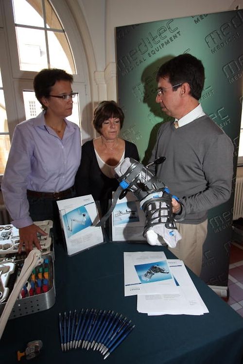 Der nationale Tag der „Association des assistants techniques de chirurgie“, der am Samstag (9.Oktober) im Mutterhaus der Franziskanerinnen in Luxemburg-Belair stattfand, sollte das Engagement der ATM zeigen, aber auch die Zusammenarbeit zwischen Ärzten und Helfern verstärken. Dieses Jahr war aus jedem Krankenhaus ein Redner vertreten, um über die neuesten Erkenntnisse der orthopädischen Chirurgie zu informieren: Dr. Adrien Wijne, Orthopäde im „Centre Hospitalier Emile Mayrisch“, Dr. Putzeys, Orthopäde aus dem „Hôpital de Kirchberg“, Prof. Dr. Stefan Rose, Chirurg, Unfallchirurg und Handchirurg des „Centre Hospitalier Régional du Nord“, Priv.-Doz. Dr. Jens Kelm, Diplom-Sportlehrer und Dr. Ing. Thomas Thielen von „Euro-Composites S.A“, Dr. Jérôme Giwer, Anästhesist und Sylvie Vincent, Anästhesiepflegerin aus der „Zitha-Klinik“ in Luxemburg. (Text/Foto: I. Madenach)