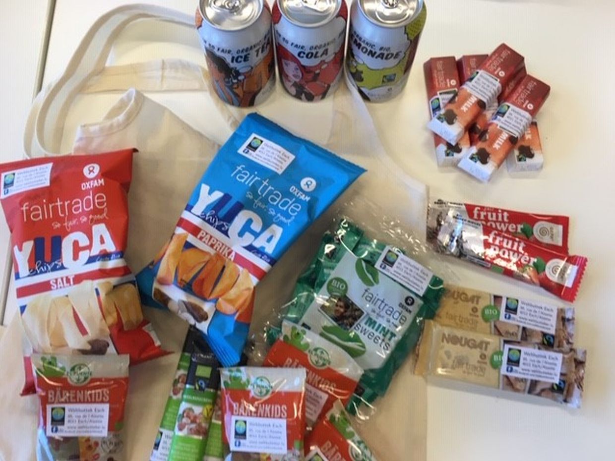 Par ailleurs les élèves ont pu participer à un Quiz portant sur des questions autour du commerce équitable. En effet depuis le lundi 4 novembre, des brochures de Fairtrade Lëtzebuerg, aidant à répondre aux questions du Quiz, étaient mises à disposition des élèves dans notre bibliothèque. Le jour de la « Journée de la Solidarité » les meilleurs élèves ont été récompensés avec des corbeilles remplies de produits Fairtrade de tout type grâce à la solidarité d’un grand nombre de sponsors cités ci-dessous.