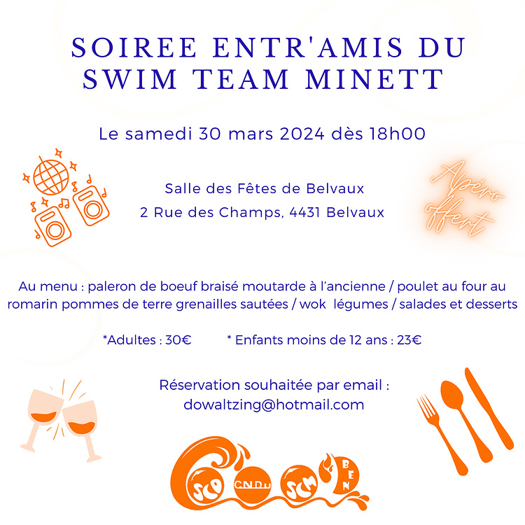 Le Schwammclub Déifferdang organise le samedi 30 mars 2024 dès 18h00 une soirée repas à la Salle des Fêtes de Belvaux.