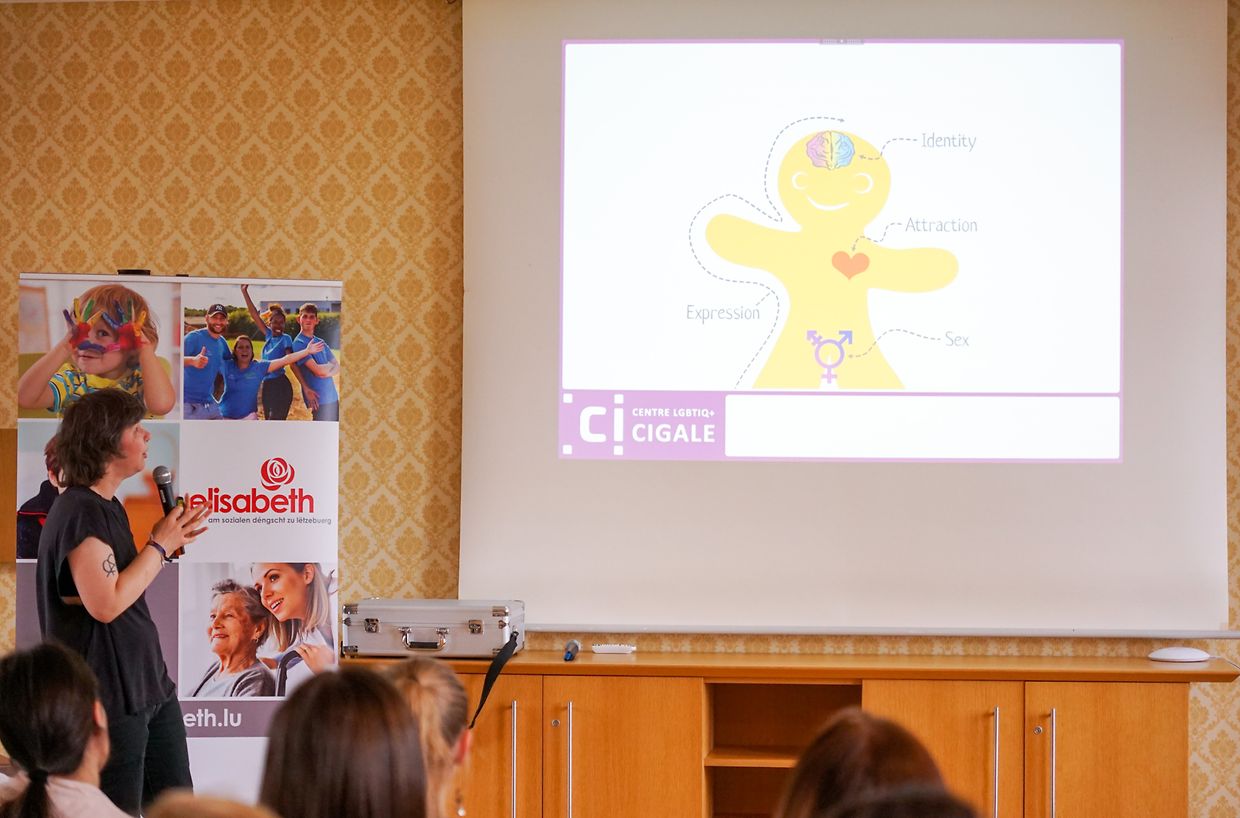 Dëse Workshop sollt de Mataarbechter/innen vun Elisabeth hëllefen, d’LGBTIQ+ Communautéit besser ze verstoen an hinne weisen, wéi si dozou kënne bäidroen, en inklusiivt Ëmfeld fir jiddereen ze kreéieren.