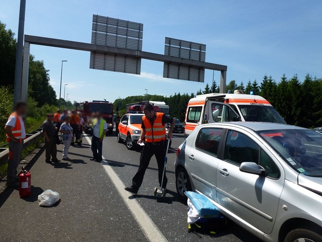 Um 10:58 Uhr wurde der Bereitschaftsdienst des Einsatzzentrum Bettemburg am 17. Juni zu einem Verkehrsunfall auf der A3 in Richtung Luxemburg kurz vor dem Gaspericher Kreuz alarmiert. Erster Meldung zur Folge wäre eine Frau verletzt. Beim Eintreffen fanden die Einsatzkräfte eine ernstere Lage vor. 3 Fahrzeuge waren in den Unfall verwickelt, 4 Personen waren verletzt, eine davon schwer. Die Fahrerin eines PKW musste von den Einsatzkräften mit ernsten Verletzungen aus ihrem PKW gerettet werden und von Notarzt aus Luxemburg-Stadt versorgt werden. Alle Verletzten wurden mit Rettungswagen aus Bettemburg ins Krankenhaus gebracht. Im Einsatz war das CIBETT mit 5 Fahrzeugen, die Feuerwehr aus Roeser, der SAMU Luxemburg sowie die Polizei.
