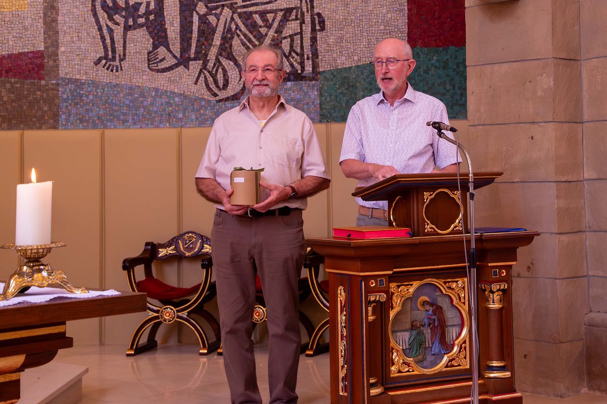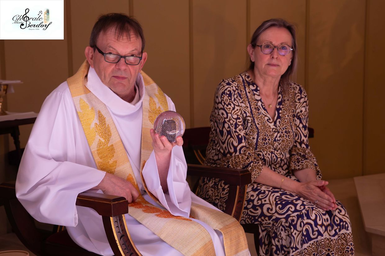 Bäi der Geleeënheet huet de Veräin dem Carlo Morbach e Kaddo iwwerreecht fir säi 40. Priisterjubiläum. De ganze Chouer CBC wënscht dem Carlo nach vill schéi Jaren a sengem Wierken als Priister derbäi.