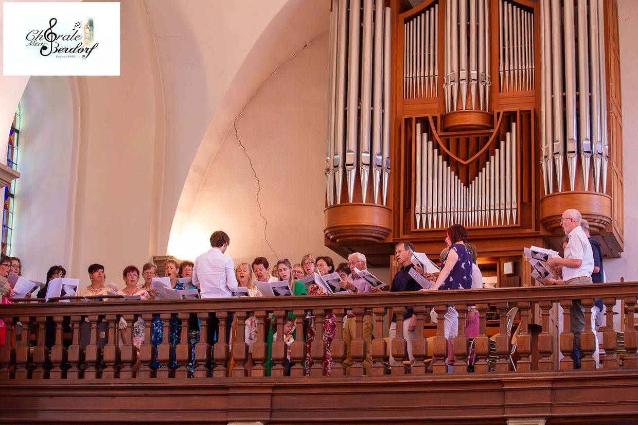 Am Kader vun de Feieren vu 75 Jar Chorale Mixte Berdorf huet d’Chorale Berdorf- Consdorf eng feierlech Kiermesmass gesongen. Enner anerem goufe Wierker vu Gounot, Mozart, Beethoven an Amy Beach ënnert der Direktioun vum Daniel Lang mat vill Enthusiasmus gesongen. De Rosch Mirkes op der Uergel huet nees eng Kéier säi künstleresche Kënnen ënner Beweis gestallt.