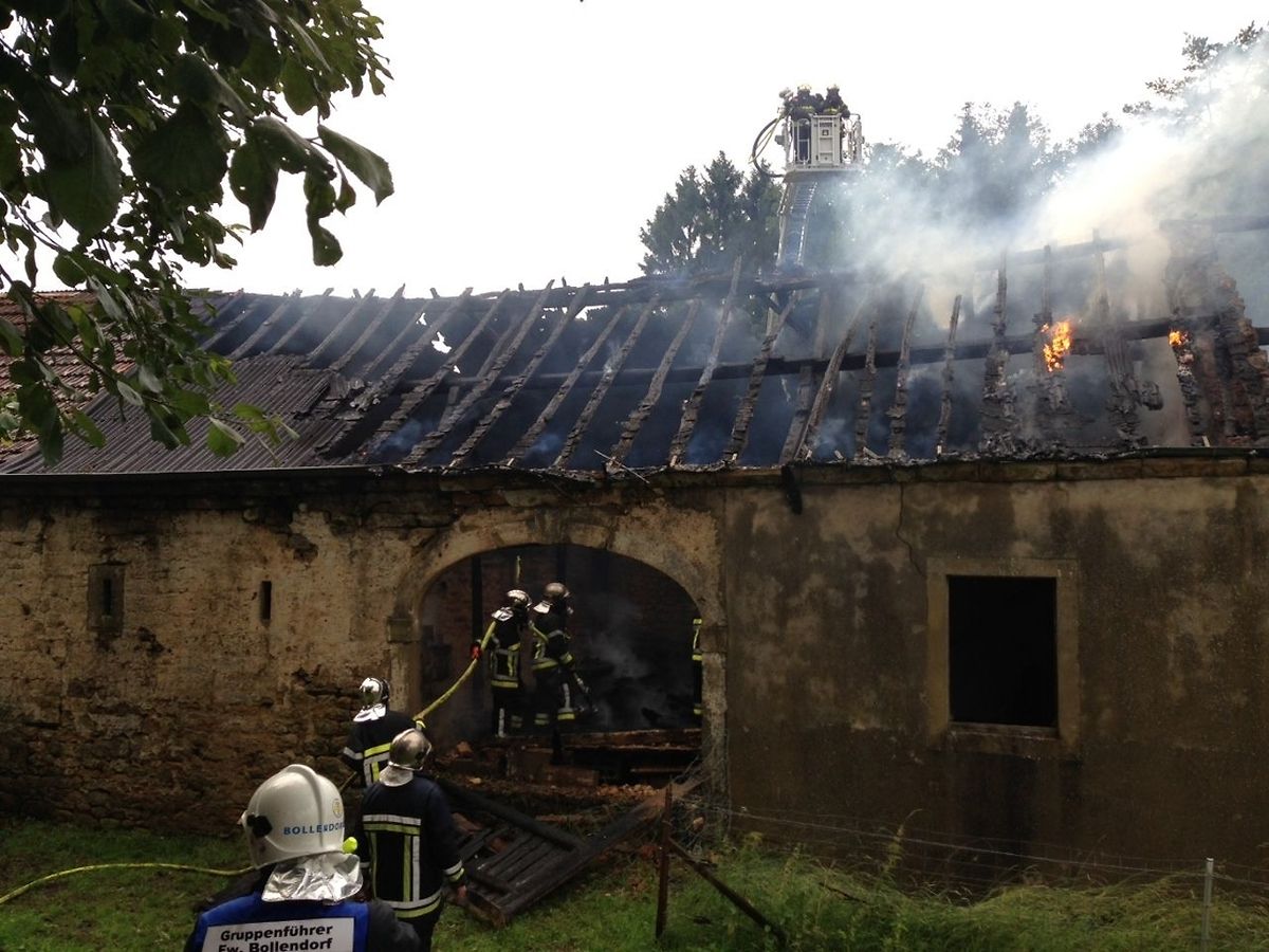 ( 2 x Berdorf + 2 x Bollendorf-D) zum Durchsuchen des Hauses (Haus ist zeitweise bewohnt) und Brandbekämpfen eingesetzt.