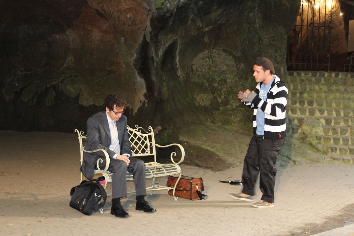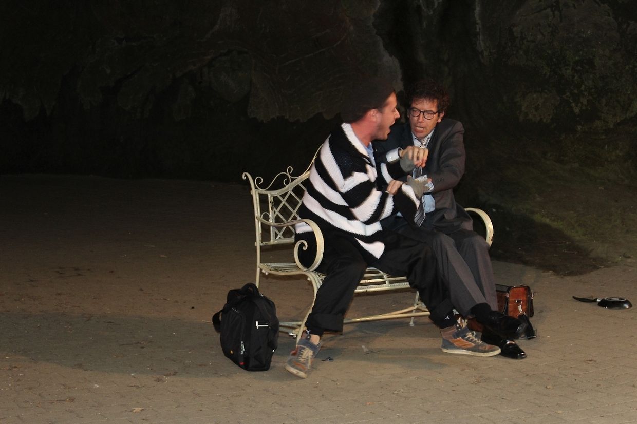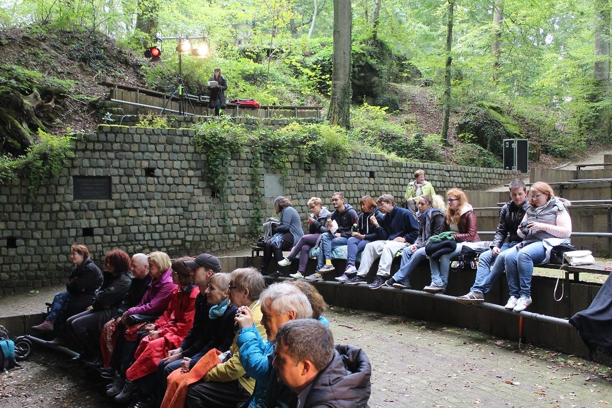 Am 26. September fand im Amphitheater in Berdorf die Aufführung des von der jungen Regisseurin Natalie Werle in die heutige Zeit adaptierte Stück "Die Zoogeschichte" nach Edward Albee statt. Der illegal in Luxemburg lebende Jerry, gespielt von Pit Wale, kommt vom Märchenpark in Bettembourg zum Müllerthal gelaufen und begegnet dort dem am Labtop arbeitenden Spießer Peter ( Patrick Gafron). Jerry konfrontiert Peter mit seinen politischen Ansichten und seinem Denken über den durch den Kapitalismus resultierenden Armut der Welt. Die beiden Figuren hätten gegensätzlicher nicht sein können und beide scheitern am Ende an ihren Ansichten. In einer Auseindersetzung stürzt sich Jerry in sein Messer und hat in Peter jemanden gefunden, seinen im Märchenpark geplanten Selbstmord zu inszenieren.