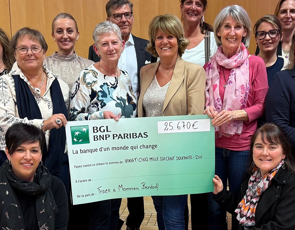 Den 26. März konnten d'Fraën a Mammen vu Berdorf op hirer Generalversammlung Schecken am Wert vun 25.670€ iwwerreechen. Dëst war zum gréissten Deel den Erléis vum Haupeschfest 2024, D'Suën goufen gespend un: Télévie, Stëmm vun der Strooss, Stroossenengelen, Ile au clowns, Femmes en détresse an Initiative Liewensufank. Déi Verantwortlech vun dene verschiddenen Organisatiounen hu Merci gesot an dovu profitéiert hir Projet'en virzestellen, an ze erklären wéi d'Suën verwend gin. 4 Memberen hun sech gemellt fir dem Comité beizetrieden. Dëst as e wichtege Schratt fir de Fortbestand vum Veräin ze garantéieren. Si goufen härzlech wëllkom geheescht. D'Sekretärin Christine Kaps huet den Aktivitéitsbericht virgedroën an d'Caissière Marie-France Siebenaler de Keessebericht. D'Presidentin Linda Hartmann huet der Gemeng, de Sponsoren, de Memberen an de Frënn en härzleche Merci gesot fir déi wertvoll Ennerstëtzung, an huet sech gewënscht dat dat an Zukunft esou bleiwt. De Buergermeeschter Joé Nilles huet d'Wuert ergraff an de Fraen a Mammen fir déi gudd Aarbecht felicitéiert. De Comité setzt sech aus 16 Memberen zesummen: Presidentin Linda Hartmann, Vizepresidentin Christiane Anen, Sekretärin Christine Kaps, Caissière Marie-France Siebenaler, Mireille Birkel, Myriam Coner- Figgle, Elisabete Dias, Germaine Greischer, Alma Karic, Martine Konsbrück, Yvonne Lima, Anne Muller, Petz Neumann, Mariette Rassel, Yvonne Pistola an Sandra Schneider.