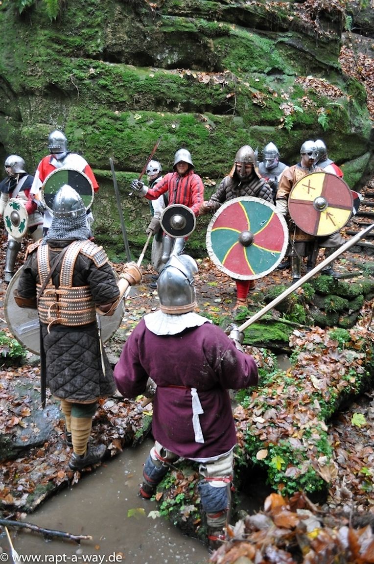 Ziel dieses Trainings war es, unter realistischen Bedingungen Truppenbewegungen und historische Kampftechniken zu praktizieren.