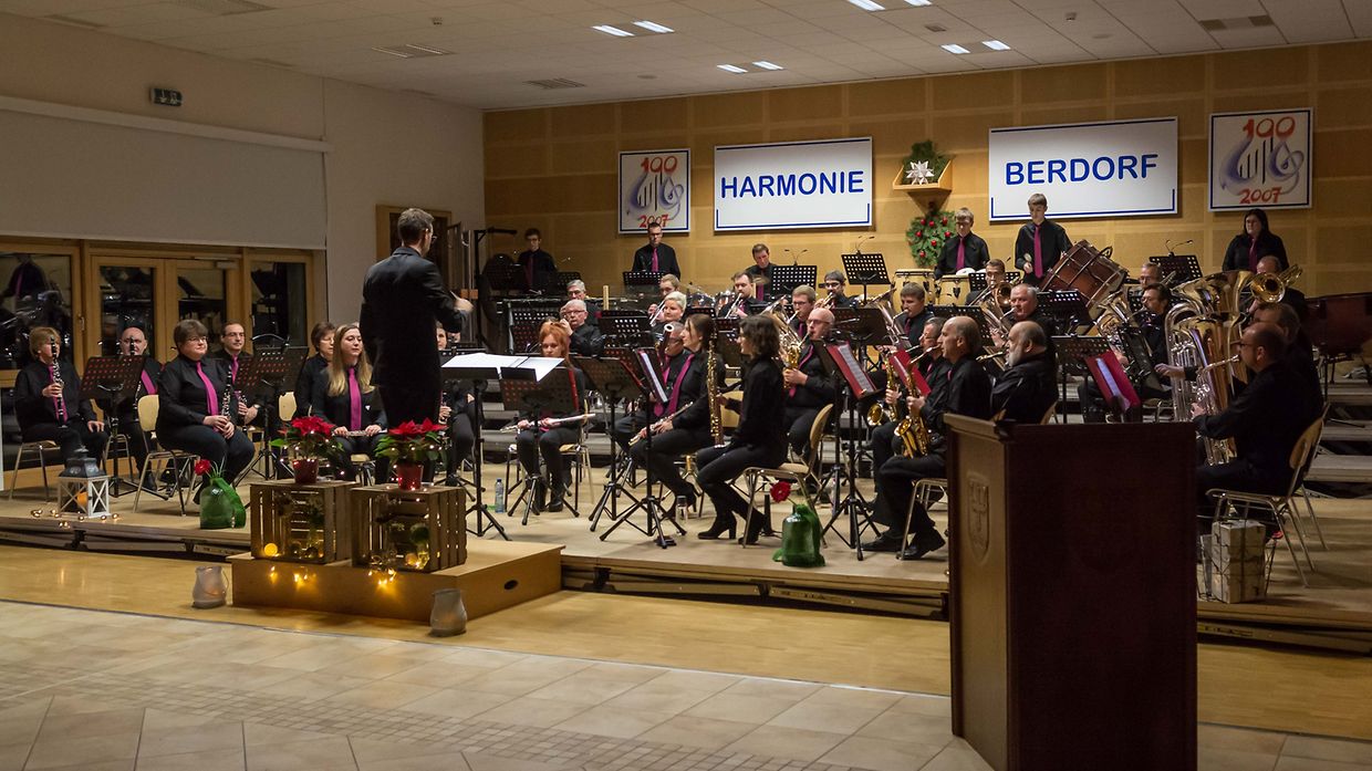 Den 21. Dezember hat Harmonie Berdorf fir hire Wanterconcert an de Centre Culturel “A Schmadds” invitéiert.Virun engem zuelräiche Publikum huet d´Bäertrëffer Musek e flotte Programm presentéiert den an d´Chrëschtzäit gepasst huet. Nom éischte Stéck huet den Tim Kleren den Dirigentebengel un de neien Dirigent Christophe Weiland iwwerreecht. De Christophe Weiland huet de Programm mat der Musek ageschafft an de Concert stoung ënnert senger Leedung. No der Paus ass de Jugendgrupp vun der Musek opgetrueden an huet dem Publikum gewisen wat si scho kënne spillen.