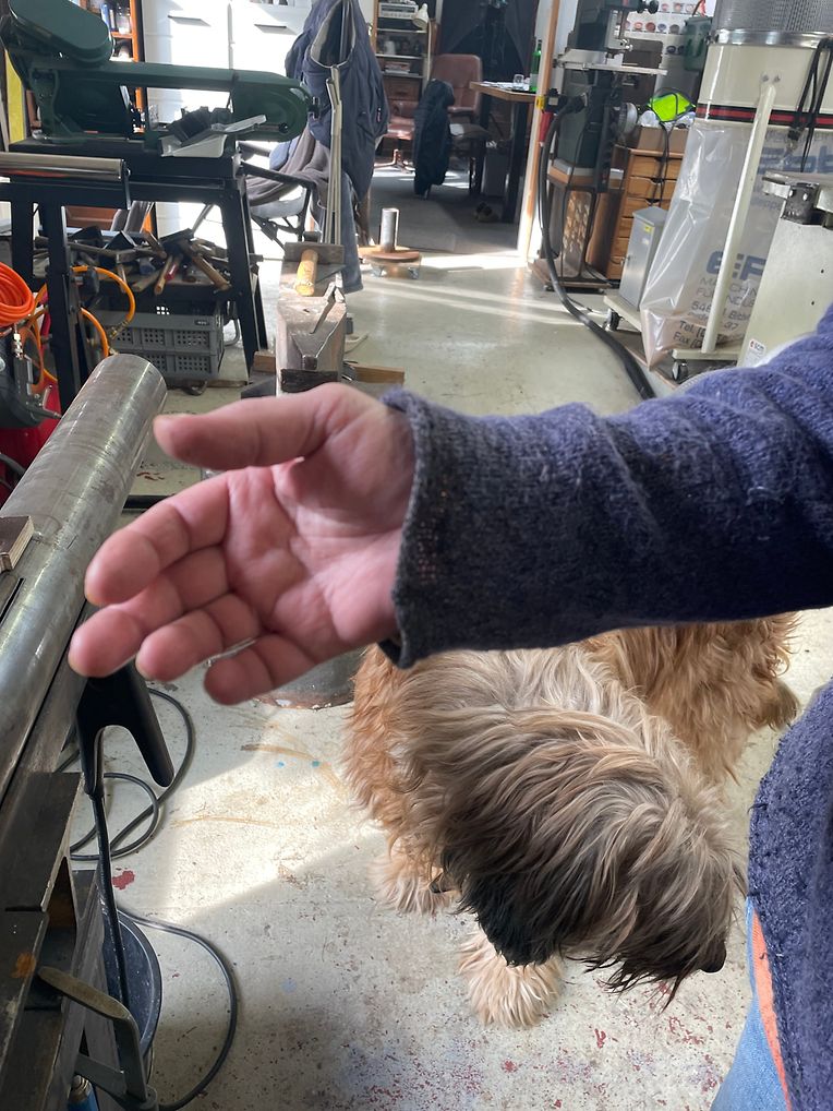 Dans l’atelier de Carmen on y rentre pour ne plus compter les heures, et ça même son fidèle chien, le berger de Brie le sait qui calme et serein, suit impassible les pas de l’artiste sans jamais rien réclamer.
