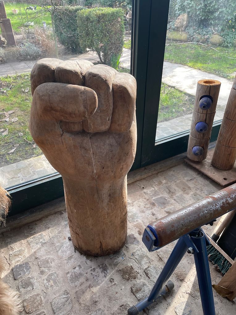 jeune fille en un superbe poing levé sculpté dans le bois, ne peut qu’étonner et susciter l’admiration de tous jusqu’au bout de la création, jusqu’au bout des temps.