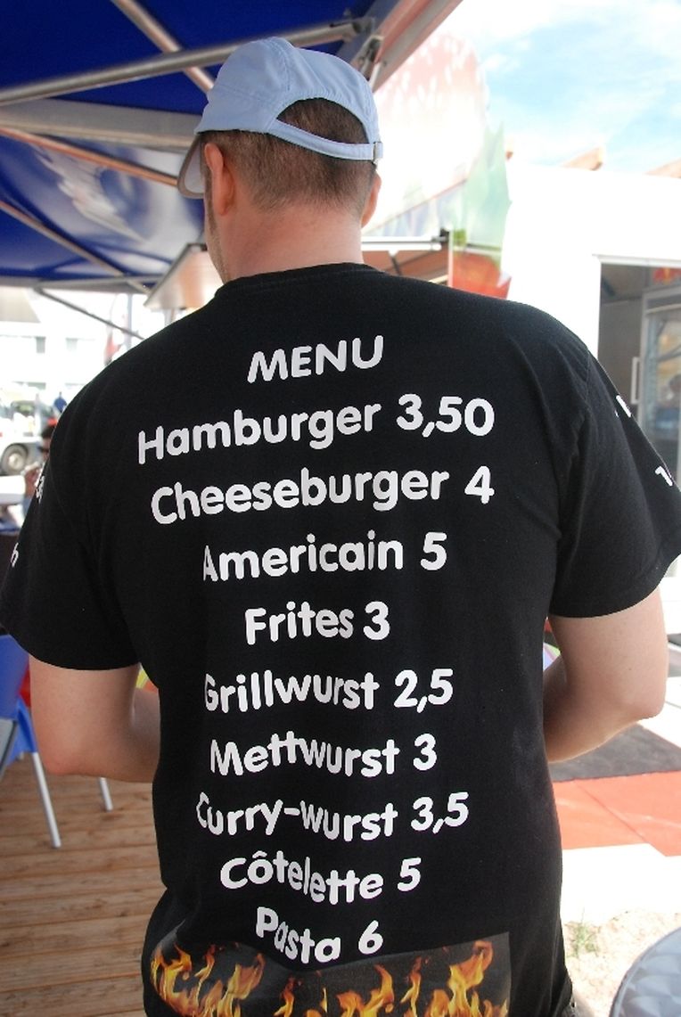 In der Tat – Am Tag der mywort-Testvisite stehen die Leute Schlange. Die Speisekarte hält Lio bewusst klein und übersichtlich. Er möchte die Leute nicht lange warten lassen. Seine Kundschaft hat in der Mittagspause nicht viel Zeit und - es soll ja auch ein „Schnellimbiss“ sein. Besonders pfiffig sind die T-Shirts der Snack-Mitarbeiter. Sollte einer von ihnen gerade damit beschäftigt sein eine Bestellung frisch zu zubereiten und dem Kunden den Rücken zudrehen, findet der den gesammten Speiseplan auf dem Rückseite der Shirts vor Augen. Das spart Zeit bei der nächsten Bestellung. „Soll es noch schneller gehen, kann auch telefonisch bei Lio's Burger bestellt werden,“ erklärt der junge Unternehmer.