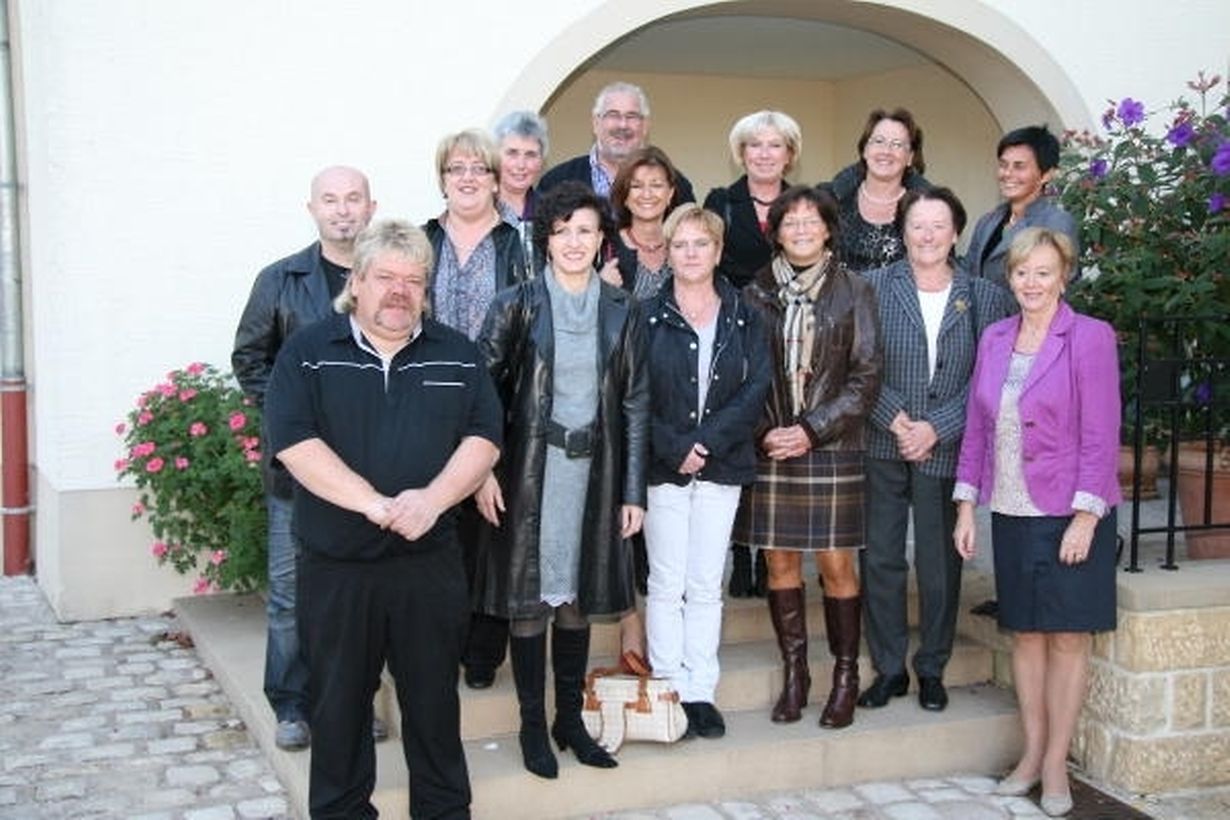 Ëm 17 Auer war Rendez-vous am Gemengenhaus zu Bierg, wou d'Biergermeeschtesch Marie-Josée Frank si empfang an den Éirewäin spendéiert huet. Owes hu si sech beim Baron zu Uesweller verwinne gelooss. Organisatore waren d'Marie-Paule Paulus, d'Christiane Hoffmann, d'Sonja Bamberg an de Raymond Schroeder. (Text/Foto: Luss Schiltz)
