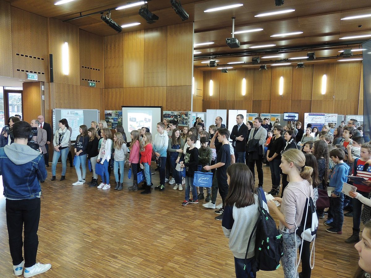 Bereits zum dritten Mal organisierte die Gemeinde Monnerich in Zusammenarbeit mit der Elternvereinigung EVM eine „Schoulfoire“, wo sich Schüler des Zyklus 4.2 der Gemeinden Monnerich, Schifflingen, Leudelingen, Reckange/Mess und Sassenheim nebst ihren Eltern über ihre zukünftige Schule informieren konnten. Bürgermeister Jeannot FÜRPASS und die Präsidentin der Elternvereinigung Nadia KAUFFMANN freuten sich über den großen Erfolg dieser Veranstaltung und bedankten sich bei den mitwirkenden Schulen. Dies waren aus Esch/Alzette: Lycée Hubert Clément, Lycée de Garçons, Lycée Technique de Lallange, Lycée Technique d’Esch/Alzette und die Ecole Privée Marie-Consolatrice. Aus Luxemburg nahmen teil: Lycée Technique du Centre, Ecole Privée Notre-Dame Sainte-Sophie, Ecole Privée Fieldgen, Athénée de Luxembourg und Lycée Technique Privé Emile Metz.