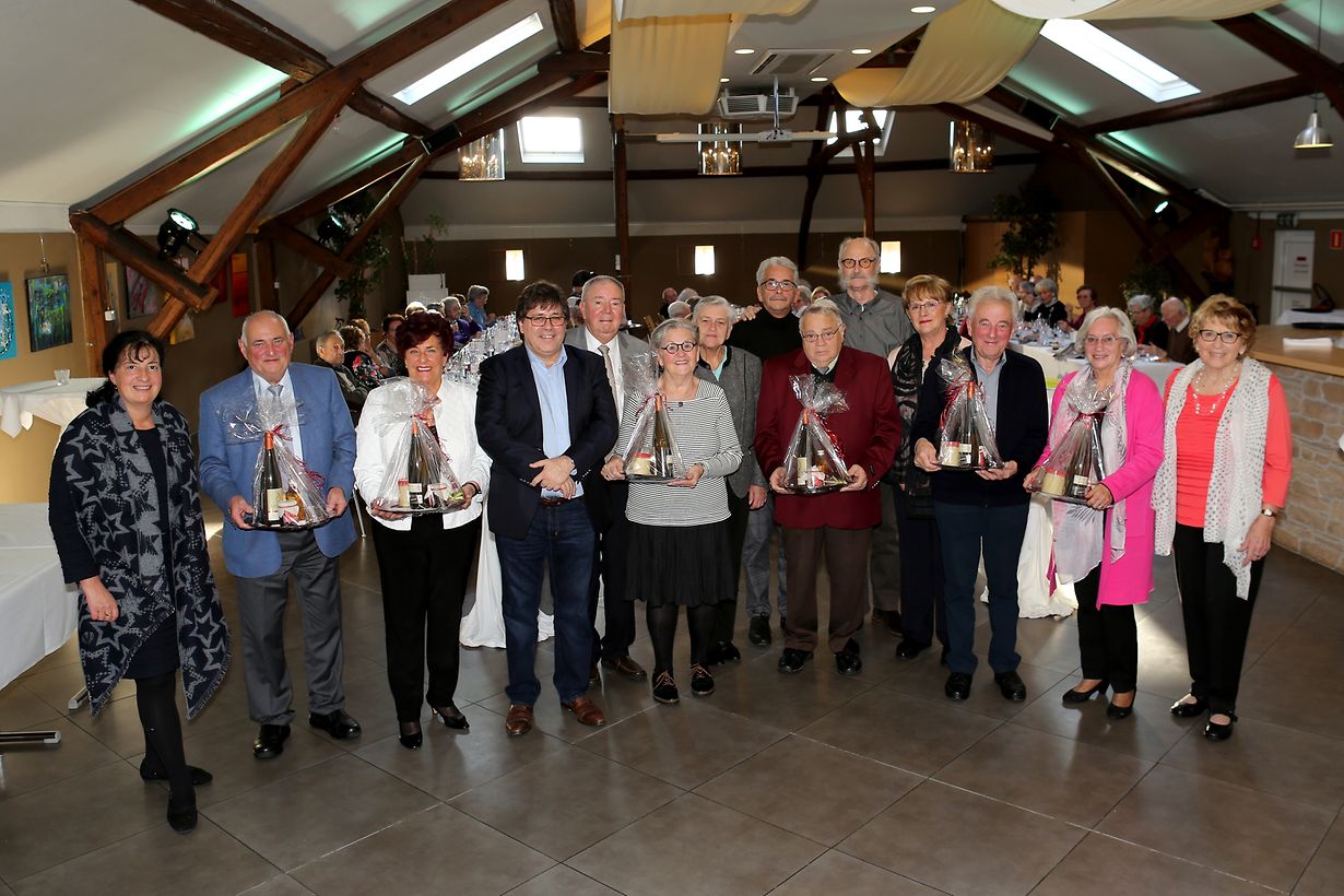 Beringen: Anfang Dezember hatte die Amiperas Sektion Mersch alle Mitglieder zu ihrem traditionellen Seniorentreffen eingeladen. Viele Teilnehmer hatten den Weg zum Restaurant“ A Guddesch“ nach Beringen gefunden, um in bester Stimmung das schmackhafte Menü zu genießen und auch in geselliger Ambiente einige angenehme Stunden gemeinsam zu verbringen. Bei dieser Gelegenheit wünschten die Vorstandsmitglieder allen Jubilaren zu ihrem 75. Wiegenfest nur das Allerbeste. Mit einem passenden Geschenk kamen zu Ehren: Welter-Offermann Alice, Kill-Rollinger Pauline, La Verge Truus, Offermann Remy, La Verge Jan, Graff Josy, Fischbach Jacques