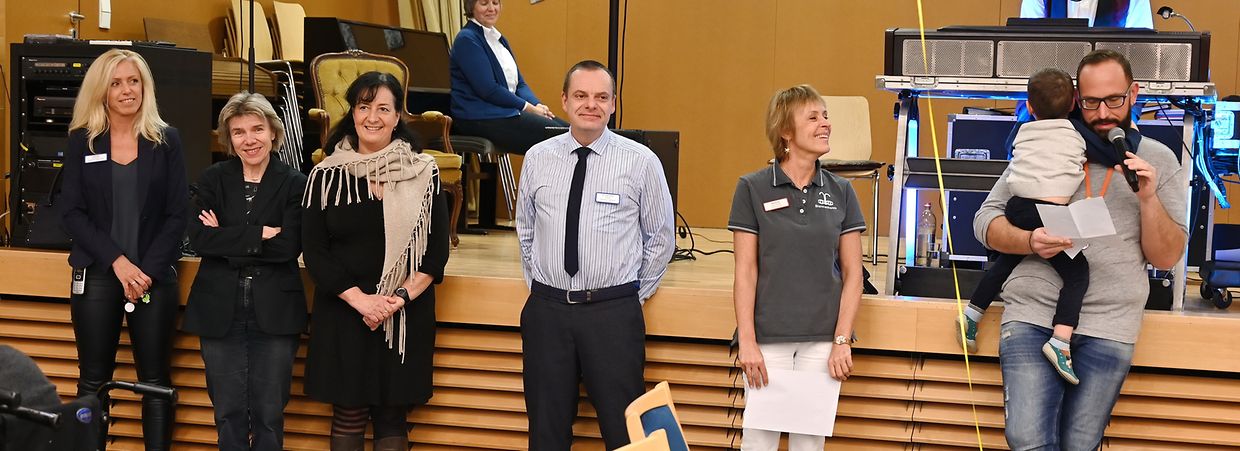 Mit 103 Jahren war es die Älteste und mit 53 Jahren der jüngste „Blannenheem“- Bewohner die Mitte Januar anlässlich der ersten gemeinsamen Geburtstagsfeier dieses Jahres, die Neujahrs- und Glückwünsche von Direktor Jean-Paul Grün, Sophie Bernard, Verantwortliche Leiterin für Pflegedienste und Mitarbeiterin Marthe Deutsch, entgegennehmen konnten. Natürlich war der große Geburtstagskuchen bei dieser Feier nicht fehl am Platz der sich sämtliche Jubilare mit ihren Familienangehörigen neben einem Glas Sekt und Kaffee und bei angenehmer Unterhaltungsmusik sich sehr gut munden ließen. Die Geehrten der Monate November, Dezember und Januar: Jeanne Merens- Menegalli (103 Jahre), Marie Steimens- Faber (95), Marie Petry- Schlim und Sisy Biermann- Karpen (94), Yvonne Huber- Koenig (93), Léonie Kalte- Heitz (92), Joséphine Prickaerts-Acampo, Anna Linden- Schroeder und Colette Grethen- Bettendorff (91),Jacqueline Schmit- Van Den Ende, François Lauer und Léon Blasen (90), Marcel Schmit, Jenny Ritter- Hary und Marguerite Beelener-Franck (89), Jean- Paul Franzetti (88), Anne- Germaine Hoffmann, Jean Bauler und Marie- Jeanne Tobias- Schmit (87), Bruno Lavina, Marie- Catherine Digrell- Calmes und Huguette Kohlwelter (86), Cécile Schmitz (85), Marie- Josée Hack, Marie Monville- Stillen und Joséphine Lavina- Reuland (84), Marie- Louise Schuller- Clesen, Margot Scholtes, Fernande Remakel- Reuland und Gertrude Kreins- Uebel (83), Léontine Walter- Goetzinger und Ernest Weicherding (82), Emilie Olsem- Ury (81), Victorine Grisius- Weis (79), Marie Emmer- Schmit, Joséphine Robinet- Schmitz und Fernand Zehren (78), Marie- Thérèse Heck und Emile Fohl (75), Georges Maes und Anita Wagner (64) Georges Klepper (53). Im Namen der Gemeindeverwaltung Mersch überbrachten Christiane Haubrich- Schandeler , Joëlle Feller- Wilmes und Henri Krier die allerbesten Glückwünsche an die Geehrten. Bereits im Vorfeld wurden die 25 Kinder der hauseigenen „Maison Relais“ mit einem „Happy Birthday“ zum Geburtstag beglückwünscht. (CR) (FOTOS: CHARLES REISER)