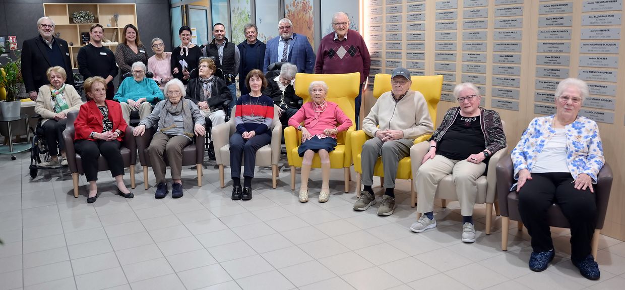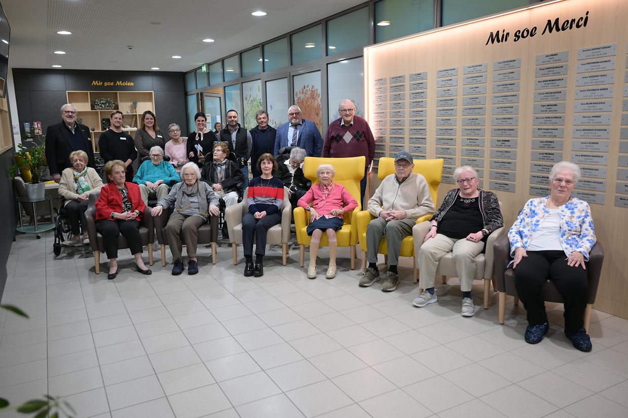Bierschbech: Di schéin Traditioun, fir hir Matbewunner zu hirem Gebuertsdag ze éieren, ass och fir d'éischt dëst Joer am Cipa- Blannenheem zu Bierschbech weider gefuert gin. An hirer Wëllkommens Ried war d'Madame Carole Theisen, Direktiouns- Beoptragt vum Blannenheem ganz frou, niewt de Gebuertdagskanner awer och de Generaldirekter Thierry Lutgen an de Buergermeeschter Michel Malherbe mat sengen zwéi Schëffen Henri Krier a Daniel Marques, häerzlich ze begréissen. No hire Gléckwënsch mat der Hoffnung op weider gudd Gesondhhet a Freed am Haus, un all Jubilaren déi hiren 80., 85, 90. a 95. Gebuertsdag konnte feieren, war et um Buergermeeschter Michel Malherbe, den och allen Jubilaren am Numm vun der Gemeng Miersch gratuléiert huet. Hien huet a senger Laudatio awer drop gehaalen fir der Féierung vum Blannenheem mam ganze Personal fir di gutt Fleeg vun alle Matbewunner, séi Luef a seng Unerkennung auszespriechen. Natirlich huet de grousse Gebuertsdagskuch bei deser Feier och nit gefeelt. Den Entertainer, Gino, huet och mat flotter Musik fir gutt Stëmmung am Festsall gesuergt. Folgend Jubilare si mat engem passende Kado geéiert gin: 80 Joer: Braun- Huls Elisabeth, Schroeder- Bonifas Marie a Hendriks- Kimmes Liliane. Fir 85 Joer: Beringer- Heinen Nicole, Reding- Schneider Suzette a Robinet- Schmitz Josephine. Fir 90 Joer: Malget- Majerus Constance, Bollig -Scheeck Henriette a Kips Antoine. Fir 95 Joer: Schmit- Hemes Madeleine, Wagner- Gläsener Léonie, Berrend - Vinandy Estelle a Becker- Kerger Fernande. (CR) (Foto: Charles Reiser)