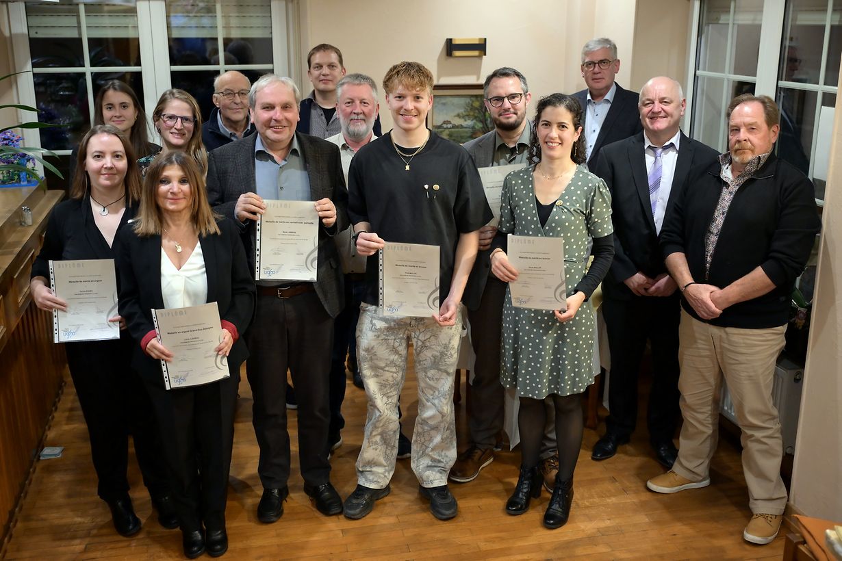 Préizerdaul: Di hëlleg Caecilia, Schutzpatrounin vun de Musikanten a Sänger gëtt all Joer och landesweit gefeiert. Och am Préizerdaul ass dest Joer am Kader vun enger Owendsmass, zelebréiert vum Jacques Bagnoud desen Dag gefeiert gin. Fir den musikalischen Encadrement vun der Mass huet di Préizerdauler Musik gesuergt wärend den Ensemble Vocal Préizerdaul zum gesanglichen Deel vun deser Eucharistiefeier beigederoen huet. Beim traditionellen Banquet op der Roudbaach huet de President vun der Préizerdauler Musik, Franz Hilger, drop gehaalen fir allen Musikantinnen a Musikanten mam Virstand a Leit di dat ganzt Joer och benevol ganz aktiv waren, säin oprichtige Merci ausgesprach. Mat besonnescher Freed konnt di nei Musikantin an zugläich och neie Member am Gemengerot, Triniane Esther, och häerzlich begréisst gin. Den neien Startmusikanten ass och vill Freed an Ausdauer bei der Musik gewënscht gin. De Jean- Paul Kinnen, als Delegéierten vun der UGDA huet d’Gléckwënsch vum Zentralcomité vum Verband, der Préizerdauler Musik iwerbruecht an hir an Zukunft mat hirer Jugend weiderhin Zesummenhaalen a Freed mat schéiner Musik an der Gemeng mat op hire Wee gin. Weiderhin huet hien een Opruff gemeet fir sech an de Comité vun der UGDA ze mëllen fir an Zukunft di fräi Plaatzen och können nei ze besetzen. No sengen bäschten Gléckwënsch si folgend langjährig Musikantinnen a Musikanten mat UGDA- Auszeechnungen geéiert gin: de Félix Muller an d’Sarah Els- Lagodny hun eng „medaille de mérite“ en bonze fir 10 Joer ugespëngelt kritt. D’Vizepresidentin Carine Zuang an d‘Jenny Lopes (entschëllegt), béid schon 20 Joer Musikantin, fir si gouf et eng „médaille de mérite en argent“. De Max Els ass fir 30 Joer an der Musik mat der „médaille en vermeil“ dekoréiert gin. De René Lanners schon zënter 40 Joer aktive Musikant ass mat der „médaille en vermeil avec palmettes“ geéiert gin. Schon 50 Joer laang ass d’Lucia Albergo bei der Préizerdauler Musik aktiv an ass mat der „médaille de mérite en argent Grand- Duc Adolphe“ ausgezeechent gin. Am Numm vun der Gemeng Préizerdaul huet de Schëffen Fernand Müller der Préizerdauler Musik mat dene Geéierten di allerbëschte Gléckwënsch verbonnen mat engem grousse Merci fir d’Engagement iwerbruecht. (CR) (Foto: Charles Reiser)