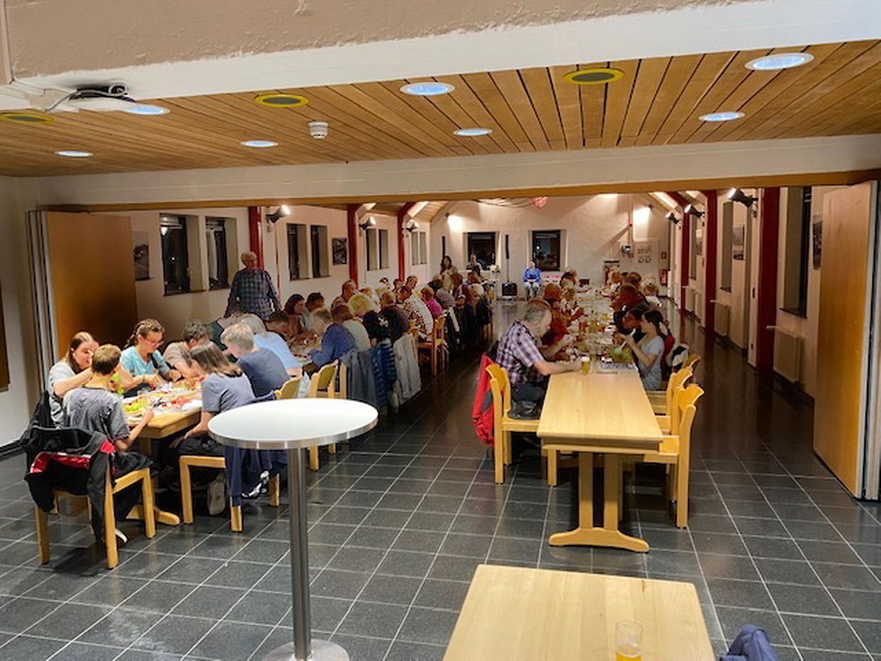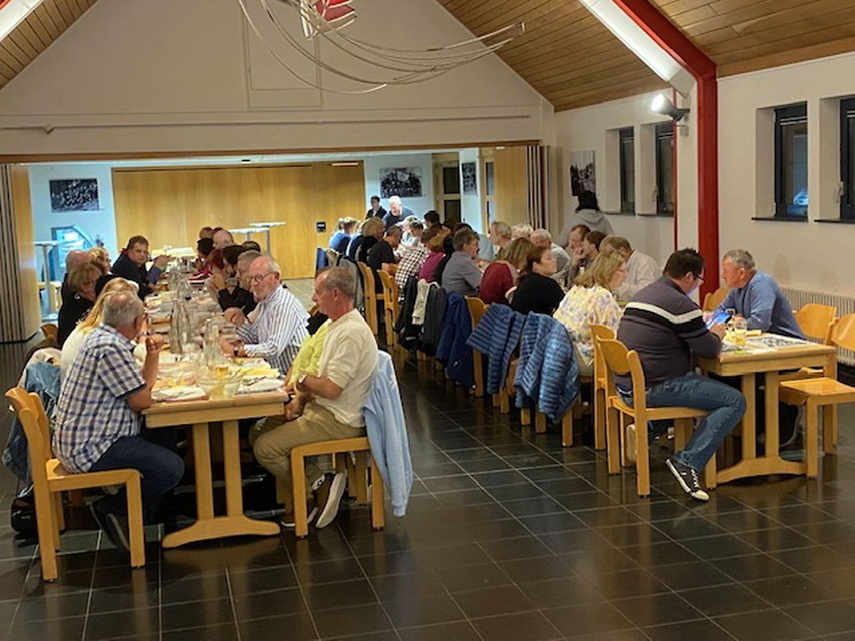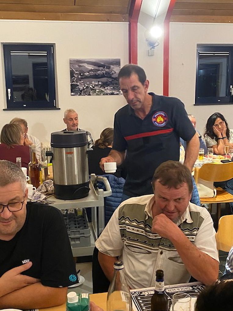 Fir d’Duerfliewen op der Kiermes am Préizerdaul nees opzeliewen, huet sech d’Amicale Pompjeeën Préizerdaul di läscht Joeren och derzou entscheed, e Bal wéi fréier am centre culturel ze organiséieren. Vill Matbierger aus der Gemeng hun sech bei der Geleeënheet den Teller Kiermesham mat Fritten an Zalôt och gut schmaache gelooss. Duerno fir den Dessert stongen eng Taass Kaffi mat engem Stéck Taart um Menü vum Owend. Mat flotter Danzmusik mam Orchester Solo Mio huet di Dauler Kiermes 2025 a gudder Gesellschaft a flotter Ambiance bis fréih an de Moien hiren würdigen Ofschloss fond. (CR) /Foto: Charles Reiser)