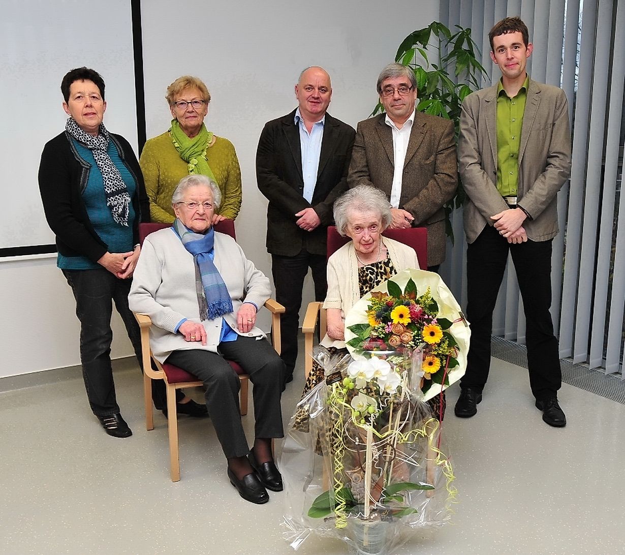Neulich statteten Bürgermeister Fernand Heyart in Gegenwart seiner beiden Schöffen Gilles Martiny und Franz Hilger einen Besuch bei Maria Harpes- Welter ab, um der Jubilarin zum 90. Geburtstag mit schönen Blumen die allerbesten Glückwünsche seitens der Gemeindeverwaltung Préizerdaul überbringen zu dürfen. Maria Welter ( Weltesch Maria) genannt, erblickte das Licht der Welt am 3. November 1924 im Préizerdaul als jüngste Tochter von zwei Geschwistern des Ehepaares Jean- Pierre Welter und Catherine Gergen. Im Februar 1961 führte Philippe Harpes aus Bettborn, seine zukünftige Ehegattin Maria Welter zum Traualtar. Während Phillipe Harpes seinen Bauernbetrieb bewirtschaftete, verwöhnte Maria Welter, schon seit ihrer Jugendzeit, viele Kunden im landbekannten Café-Restaurant „ bei Weltesch Kett „ im Préizerdaul, mit Luxemburger Spezialitäten. Ehemann Philippe verstarb am 24. Mai 1997. Am 1. Januar 2012 musste „ Weltesch Maria“ altersbedingt und schweren Herzens die Gaststube ebenfalls definitiv aufgeben. Zu den Gratulanten gehörten eine Delegation der „Amicale vum drëtten Alter Préizerdaul“ mit ihrer Vorsitzenden Mariechen Martiny- Schaus an der Spitze, die Maria Harpes- Welter zum Ehrentag mit herrlichen Orchideen ihre Glückwünsche zum Ausdruck brachten. (Text/ FOTO: CHARLES REISER)