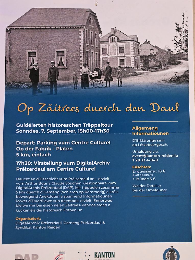 Historischen Trëppeltour duerch de Préizerdaul a Virstellung vum DigitalArchiv mam Caroline Schmit, Arthur Bour an Claude Steichen. (Fotoen: Charles Reiser)