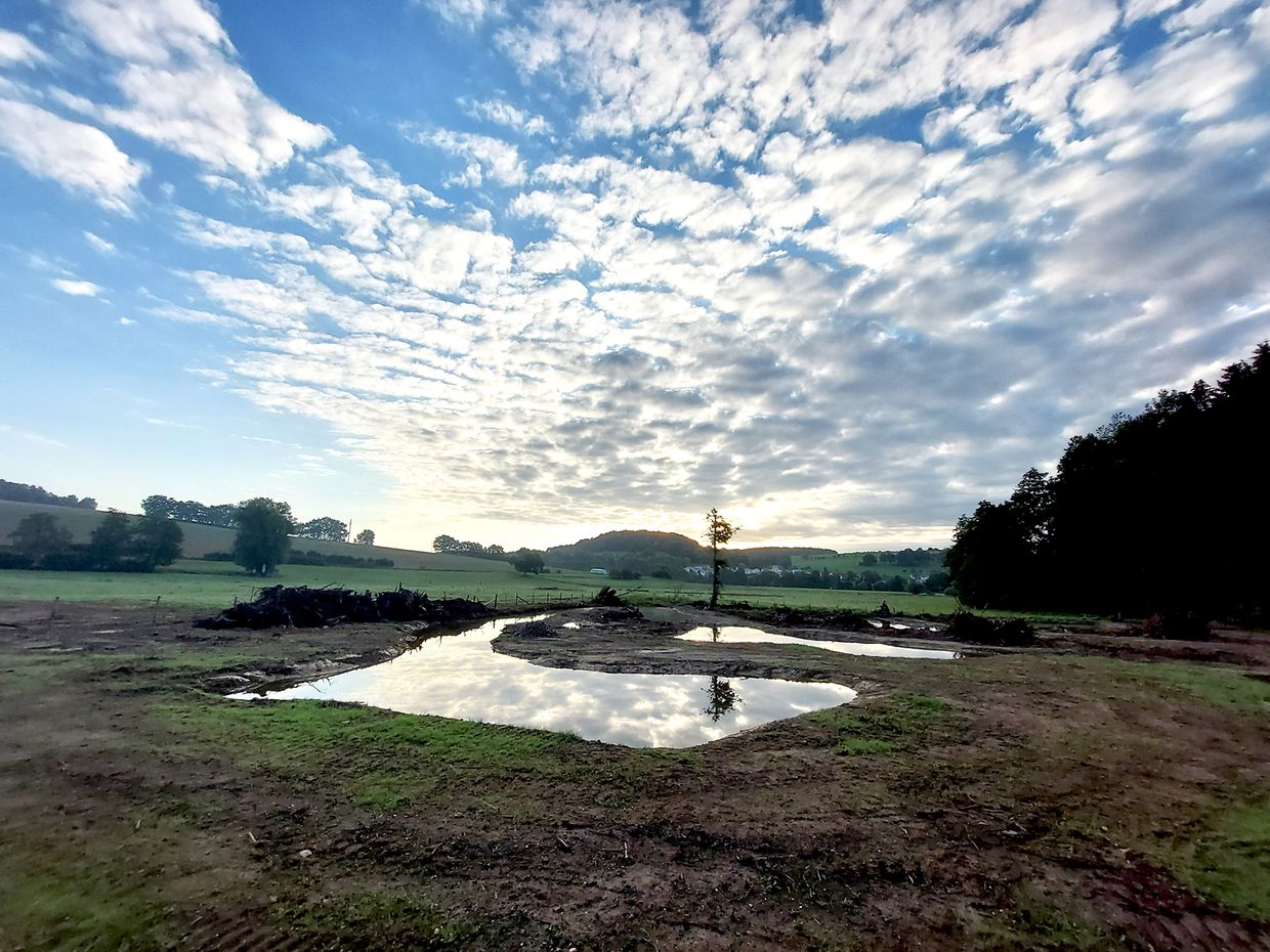 Auch der unterhalb liegende Bach Roudbaach wird von der Maßnahme positiv beeinflusst. Das wiederhergestellte Feuchtgebiet puffert sowohl Nährstoffe als auch die Wassermengen, d.h. das Wasser wird etwas länger in der Fläche gehalten und hilft dadurch Trockenperioden zu überstehen.