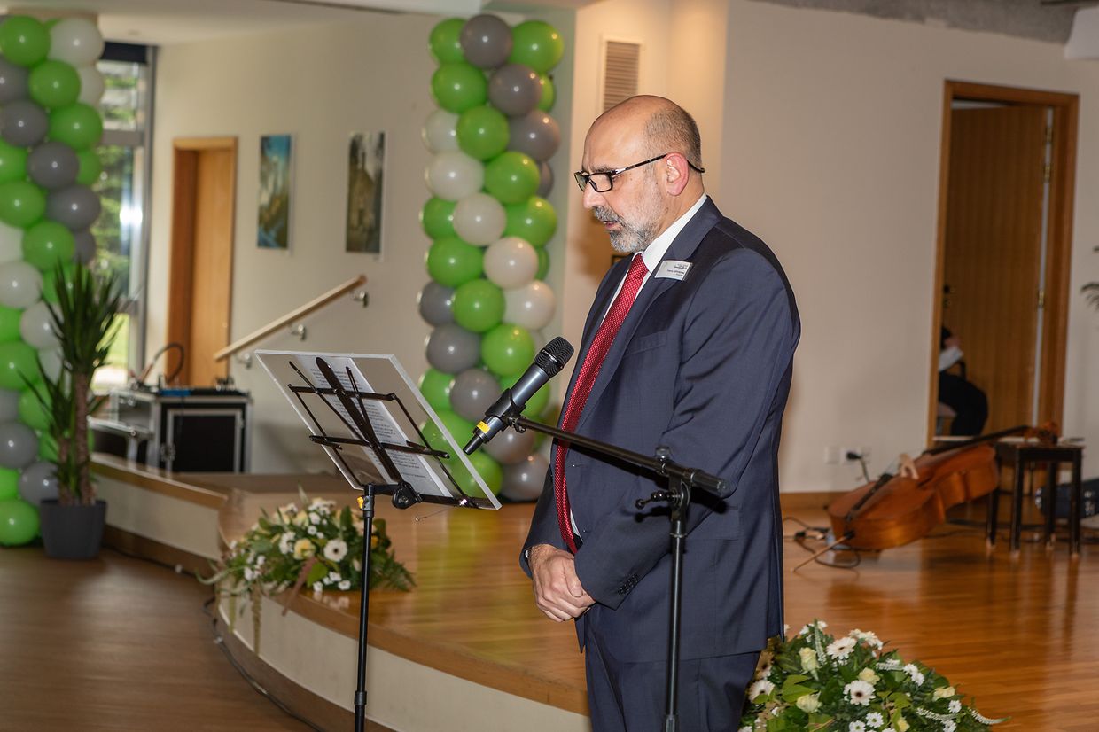 Monsieur André Mergenthaler, musicien luxembourgeois de renom, a accompagné les discours sur son violoncelle et a ravi les invités avec son talent musical.