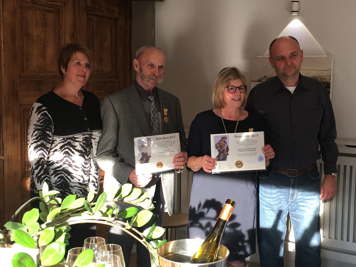 Mett Lietz und Nicole Schroeder-Barthel wurden am Festtag der heiligen Cäcilia mit der "Médaille en Or avec Palmettes" des Piusverbandes ausgezeichnet. Diakon René Schumacher und Präsidentin Mélanie Juncker dankten den Jubilaren für ihren aussergewöhnlichen und vorbildlichen Einsatz. Alle Teilnehmer am Festessen im Restaurant "La Charrue d'Or" schlossen sich natürlich den Gratulationen an.