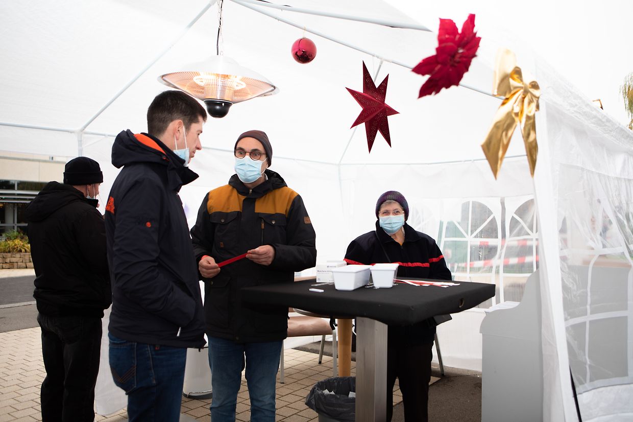 Vor dem Eingang der résidence ließ die weihnachtliche Stimmung nichts zu wünschen übrig, so wurde auch hier für das leibliche Wohl der Besucher gesorgt, sei dies durch „Gromperekichelcher“, „Lënsenzopp“ oder Glühwein.