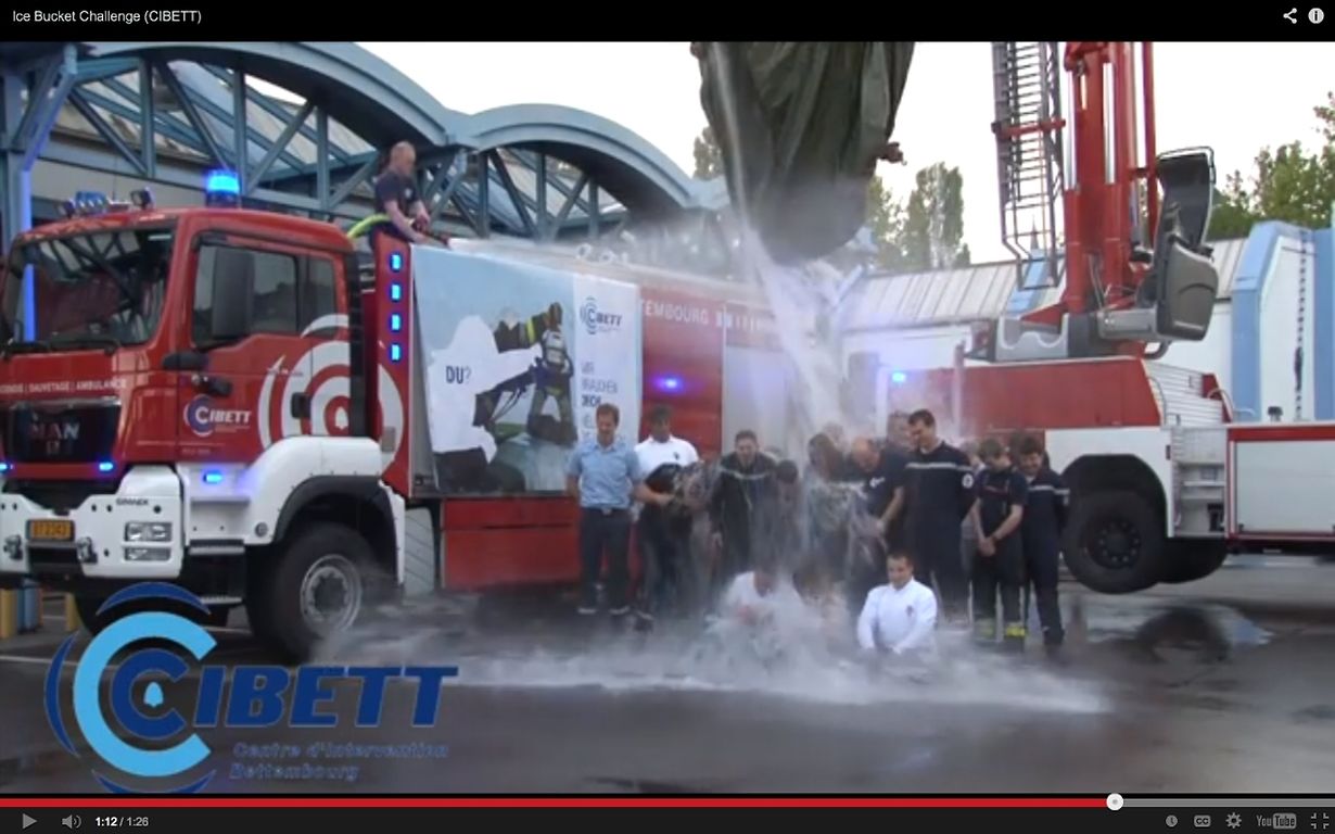 Nachdem Bürgermeister Laurent Zeimet das Einsatzzentrum Bettemburg zur bekannten "Ice Bucket Challenge" nominiert hatte, ließen sich die Mitglieder des CIBETT auf den Spaß ein. Dabei wurde der ernste Hintergrund dieses Internettrends natürlich nicht vergessen, jeder Teilnehmer im Film hat einen Beitrag gespendet. Wie es die Tradition dieser Herausforderung verlangt, wurden weitere Wehren nominiert. Jetzt liegt es am Einsatzzentrum Düdelingen, der Feuerwehr Leudelingen sowie an den Disponenten der Leitstelle 112 und der "Administration des Services de Secours" sich ebenfalls ins kalte Nass zu stürzen, und eine Spende für einen guten Zweck bereit zu stellen.
