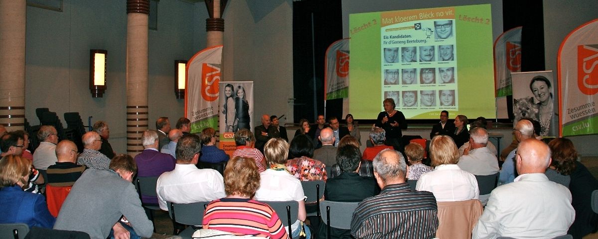 Laurent Zeimet und seine Mannschaft setzen nach 24 Jahren absoluter LSAP-Mehrheit auf neue Ideen. "Wer der Ansicht ist, dass Bettemburg kein Verkehrsproblem hat, muss am Sonntag für die LSAP stimmen. Wer allerdings meint, dass wir das Chaos nicht weiter hinnehmen können, muss am Sonntag für die CSV stimmen!", so der Spitzenkandidat bei der Abschlussveranstaltung im Bettemburger Schloss.