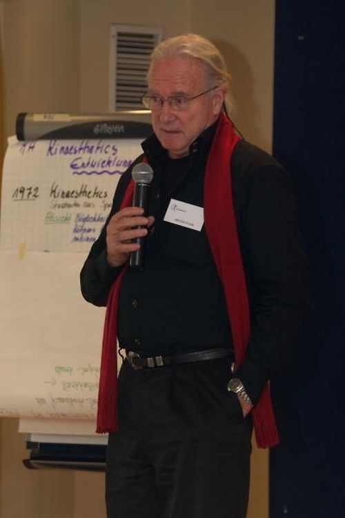 Frank Hatch, ausgebildeter Tänzer und Choreograph sowie promovierter Verhaltenskybernetiker, stellte auf anschauliche Weise das gemeinsam mit seiner Frau Dr. Lenny Maietta Mitte der 70er-Jahre erarbeitete Konzept über Bewegungssensibilität und Handlungskompetenz vor. Unterstützt von den „MH Kinaesthetics“-Trainerinnen Doris Schneider-Peter (Luxemburg), Helena Heinen und Carmen Steinmetz-Ehrt (Belgien/Deutschland), lud der Amerikaner seine Zuhörer zum aktiven Mitmachen ein.