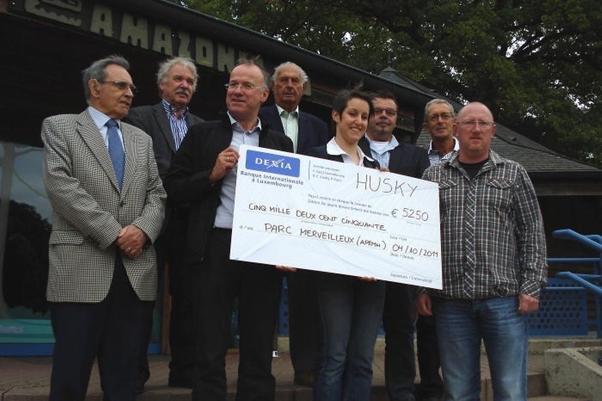 Den Erlös des Familientages der Firma Husky aus der Industriezone Bettemburg/Düdelingen, gebildet aus Spenden der Mitarbeiter und aufgestockt durch eine substanzielle Spende der Direktion, in Höhe von 5 250 Euro, konnten vor kurzem die Husky-Vertreter Walter Berettini, Katharina Bost und Dimitri Romsse an die Verantwortlichen des Bettemburger „Parc Merveilleux“ überreichen. Die Firmenvertreter erinnerten daran, dass dieses starke Engagement keineswegs punktuell sei, sondern dass vor fünf Jahren sich fast 100 Beschäftigte der Firma einen ganzen Tag lang freiwillig an den anfallenden Arbeiten im Park beteiligt haben. Der Direktionsbeauftragte des Märchenparks, Marc Neu, dankte den Spendern für deren großherziges Wirken während der vergangenen Jahre. Mit der jetzigen Spende werden die Betreuer der behinderten Mitarbeiter des „Parc Merveilleux“ eine Blechbiegemaschine erwerben, die im Alltag in der Betriebswerkstatt zum Einsatz kommen und weitere Ausbildungsmöglichkeiten für die Mitarbeiter bieten kann. (TEXT/FOTO: ALY BORSCHETTE)
