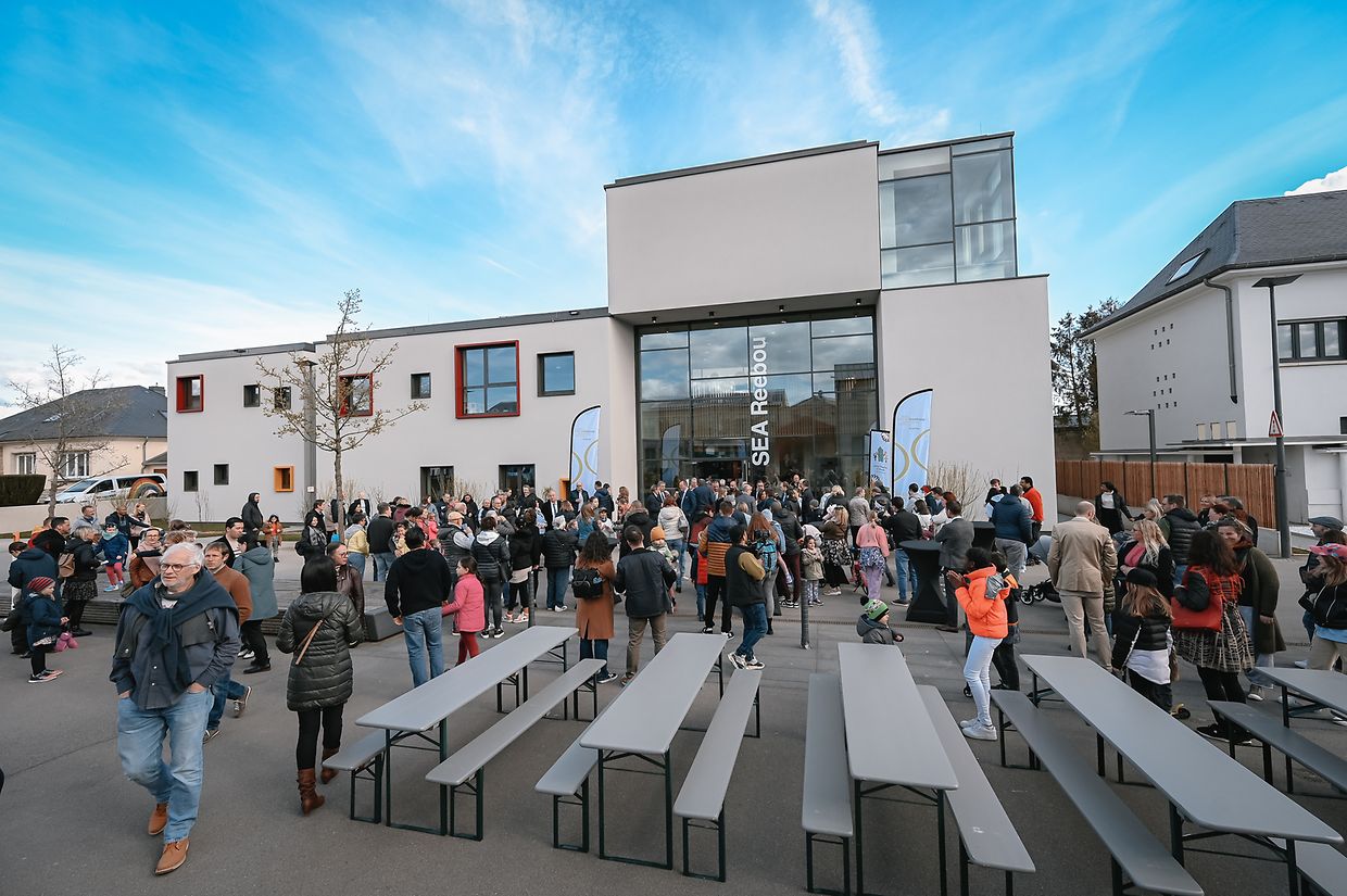 L’ouverture du SEA Reebou marque l’achèvement du premier des quatre campus éducatifs prévus dans la commune. Le concept: une étroite coopération entre l’école et le Service d’Éducation et d’Accueil (SEA), supprimant la nécessité de déplacements chronophages entre les différentes installations pour les enfants. « Les enfants et les familles sont notre priorité », a souligné le bourgmestre M. Laurent Zeimet dans son discours. « Avec la construction de cette structure, il est possible de prendre en charge encore plus d’élèves – et d’anticiper les besoins futurs de la commune. »