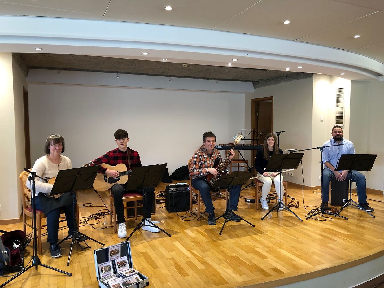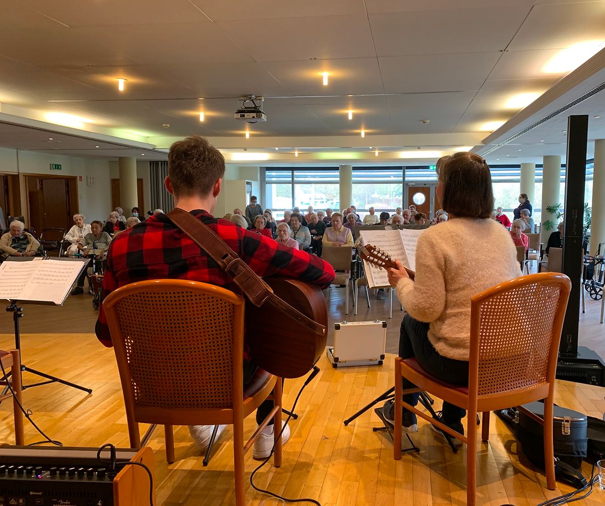 Die Freude bei den Bewohnern des Cipa "An de Wisen" in Bettembourg war gross, als das Musikensemble Divertimento aus Heffingen vor voll besetztem Haus zum Konzert aufspielte. Die musikalischen Arrangements aus der Feder der Präsidentin Isabelle Merlevede liessen keine Wünsche offen. Mit bestbekannten Melodien wie "Shallow", " Bella Ciao", "Ti Amo", "Perfect", "Fernando", "Guantanamera", "Sweet Caroline" sowie "Save the Last Dance for me", zogen die Musiker die zahlreichen Zuhörer rasch in ihren Bann. Die harmonischen Darbietungen gespielt auf Mandoline, Gitarre, Bass, Querflöte, Xylophon und Cajon sorgten für gute Stimmung und wurden mit viel Applaus quittiert. Die Vertreterin des Hauses Isabelle Ruckert bedankte sich aufs Herzlichste bei den Musikern für den schönen musikalischen Nachmittag und lud Divertimento zu einem weiteren Konzert im Herbst ein. Dankbar verabschiedeten sich die Musiker von dem begeisterten Publikum mit dem passenden Titel "Time to Say Goodbye".