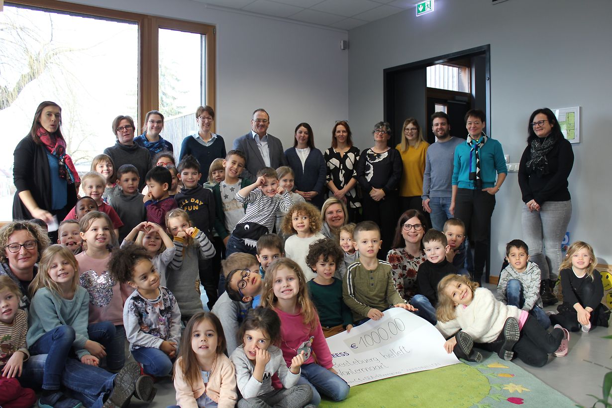 Die Elterngruppe der Sonneschoul, die für dieses Ereignis zur Hilfe stand, rundete die Summe auf 1000 Euro ab. Im Beisein von Schulschöffin Josée Lorsché und Roby Biwer, Präsident von "Beetebuerg Hëlleft", wurde das so gesammelte Geld als Spende an die Hilfsorganisation überreicht.