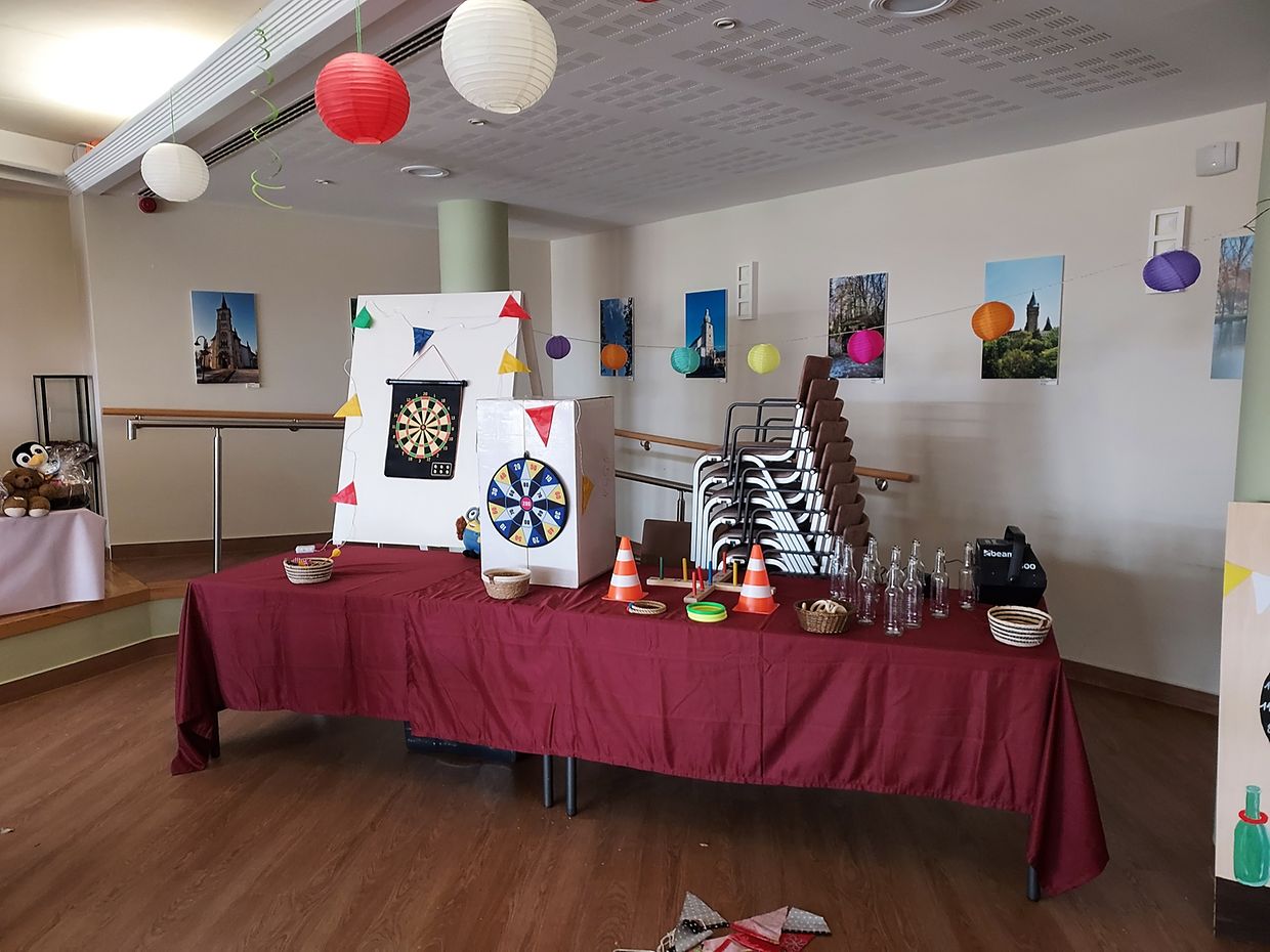 Am Festsall a ronderëm d’Haus waren sëllege Stänn opgebaut. D'Spiller hu Grouss a Kléng begeeschtert an d'Geisterbahn huet nees fir vill Furrie gesuergt. Natierlech goufen et frësch gebaaken Eisekuchen an Leckereien vun der Confiserie "Chez Nono".