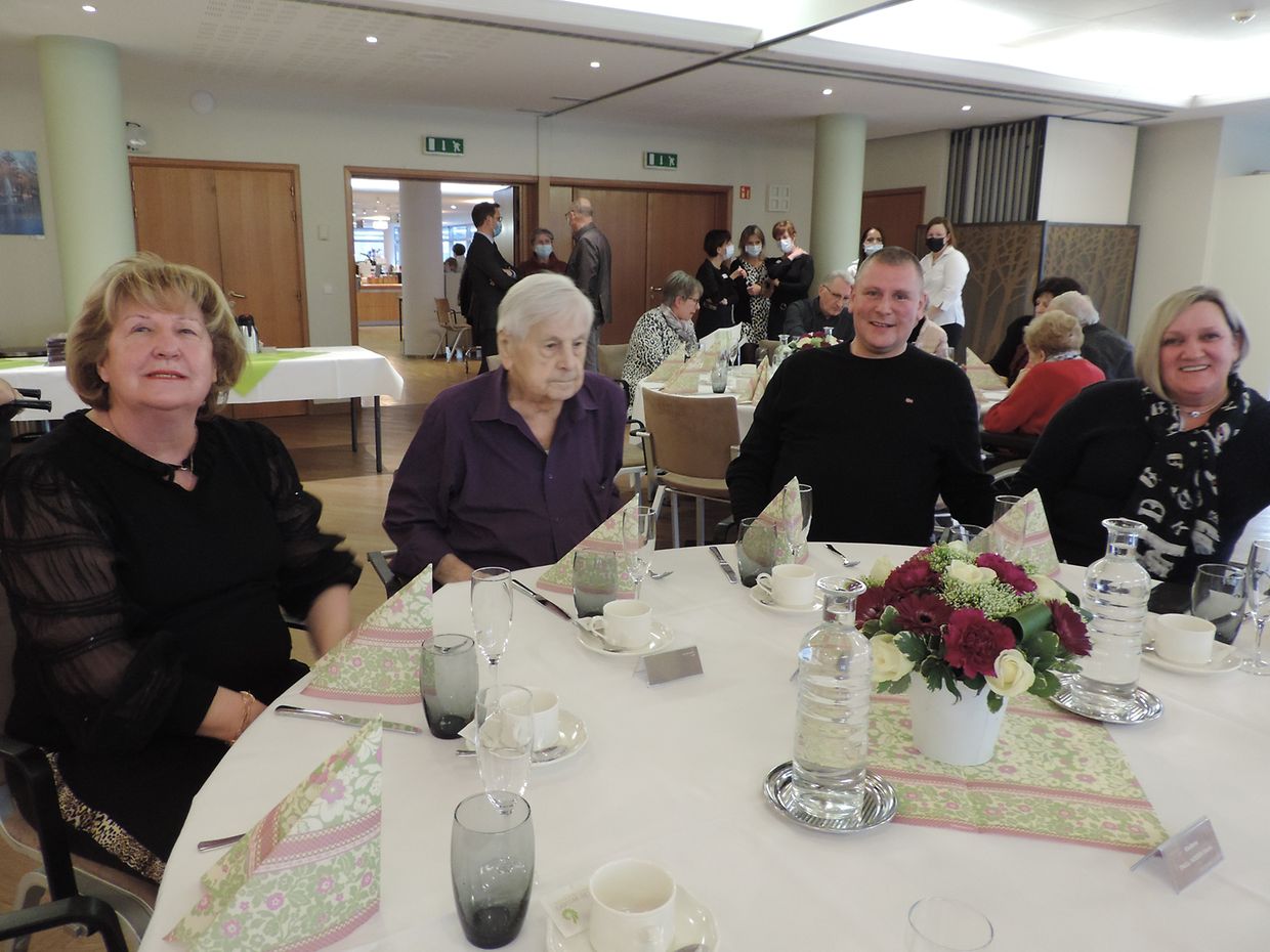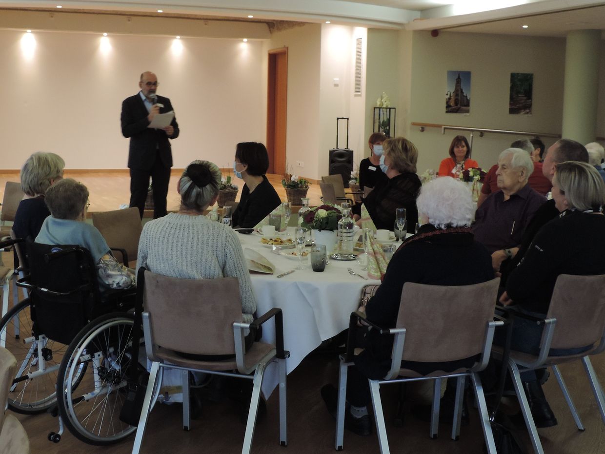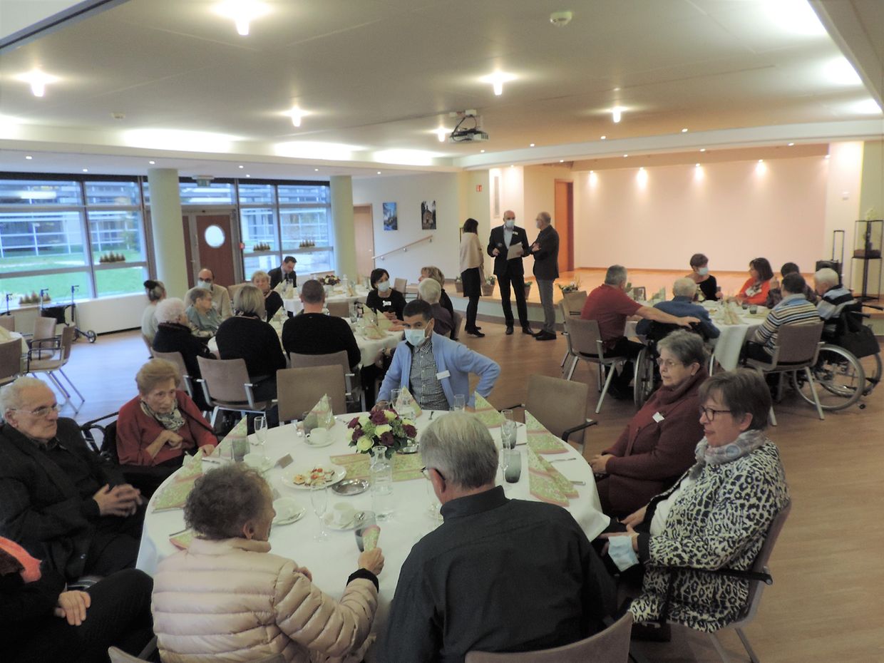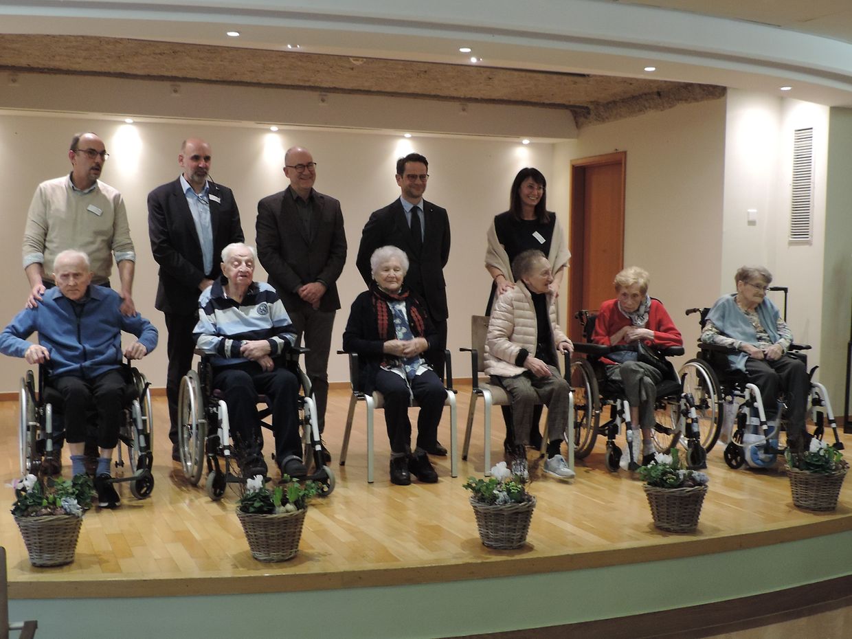 Bewunner vun der résidence pour personnes âgées an de wisen, déi deen Dag présent waren a geéiert goufen: