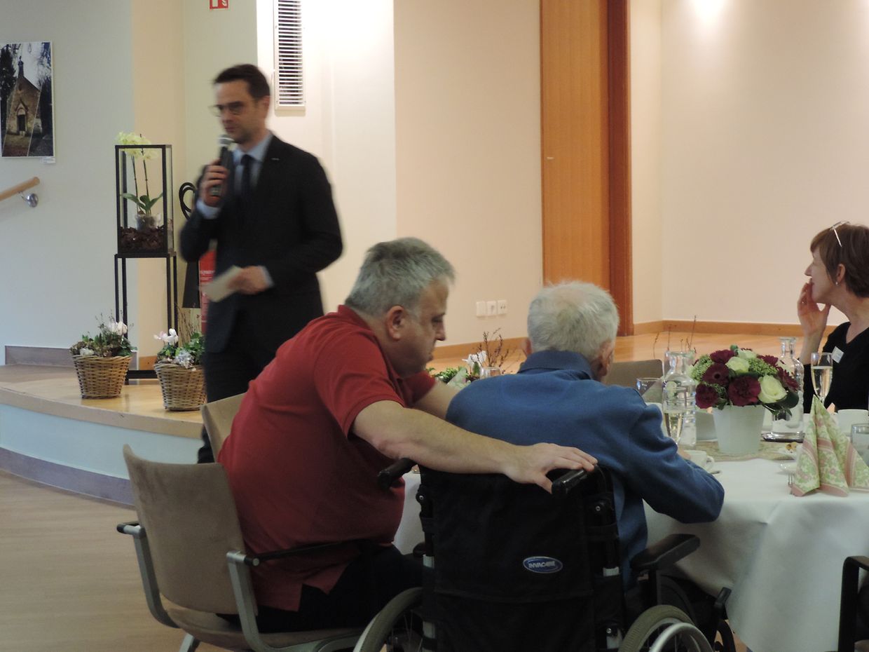 Den Här Thierry DIFFERDING, Direkter vun der résidence pour personnes âgées an de wisen, den Här Laurent ZEIMET, Buergermeeschter vun der Gemeng Beetebuerg ewéi och den Här Jean-Marie Jans, Schäffe vun der Gemeng Beetebuerg, hunn de Jubilaren hir Sympathie ausgedréckt an hinnen an deem Zesummenhang e Cadeau iwwereecht.