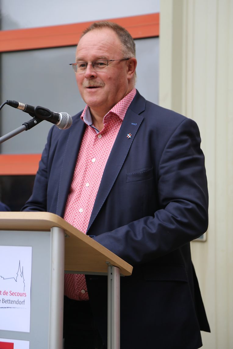 Vill Éiregäscht aus der Politik, dem regionalen Pompjees- an Rettungswiësen, Volontairen , Jugendpompjeeën an Pensionnairen konnten vun der Madame Buergermeeschter Pascale Hansen an dem Zenterchef Fränk Kraemer zu Bettenduerf begréisst gin.