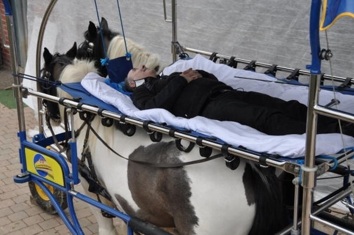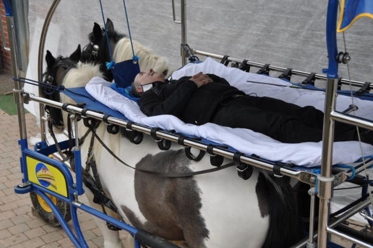 „Das Hinlegen der Patienten erfordert äußerste Fachkunde und genaueste Kenntnisse des Krankheitsbildes des jeweiligen Kandidaten. Mit einem speziellen Hebelift kann der Patient auf das ,Huifbed‘ hochgehoben werden. Die Sicherheit und das Wohlbefinden der Kunden haben höchste Priorität“, erklärt Peter Aendekerk, der selber die Kutsche lenkt. Das Huifbettfahren ist geeignet für Menschen mit einer körperlichen oder geistigen Behinderung, für Personen mit Durchblutungsstörungen, Lungenverschleimungen und Muskel- und Gelenkproblemen, für Rheumapatienten, Spastiker und Personen, die unter Stress und/oder Burnout-Symptomen leiden.