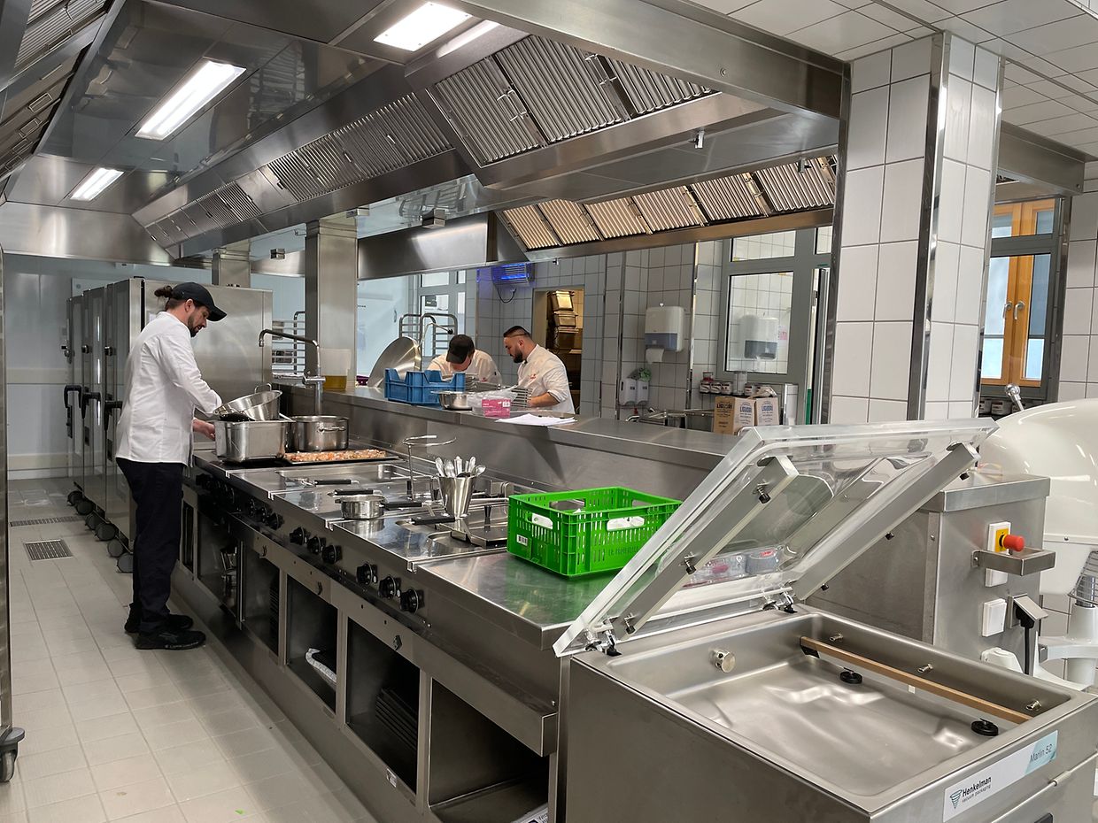 Ursprung des Projektes Die 2004 eröffnete Cafeteria mit integrierter Küche war für bis zu 150 Mahlzeiten täglich ausgelegt. Mit der Zeit erwies sich der Raum jedoch als unzureichend aufgrund der zahlreichen Sitzungen, Schulungen und Workshops. Angesichts dieser Situation und nach einem Austausch mit dem Ministère de la Famille, des Solidarités, du Vivre ensemble et de l’Accueil wurde die Entscheidung getroffen, die Infrastruktur zu modernisieren. Verlauf der Umbauarbeiten • Mai 2023: Beginn der Arbeiten an den Versorgungsleitungen vor der Cafeteria • Ende September 2023: Start der Umbauarbeiten in der Cafeteria – währenddessen wurde die Verpflegung in den Festsaal verlegt, was für das Küchenteam eine logistische Herausforderung bedeutete. Das Essen musste dorthin transportiert und das benutzte Geschirr zurückgebracht werden. • Ende Januar 2024: Umzug in die provisorische Küche • Ende September 2024: Inbetriebnahme der neuen Küche, inklusive neuer Umkleiden für das Küchenpersonal • Dezember 2024: Erste Mahlzeit in der neuen Cafeteria Vorteile der neuen Cafeteria • Eine größere, modernisierte Küche • Ein barrierefreier Raum für Menschen mit eingeschränkter Mobilität • Eine den Standards entsprechende Spülküche • Klimatisierte Räume und verbesserte Akustik für mehr Komfort • Ein Treppenturm mit Aufzug Die größte Herausforderung bestand darin, dass der geplante Treppenturm genau an der Stelle entstehen sollte, wo sich die Hauptversorgungsleitungen des gesamten Standorts befanden – Wasser, Fernwärme und sämtliche elektrischen Leitungen. Die Umverlegung dieser Infrastrukturen musste erfolgen, ohne den laufenden Betrieb wesentlich zu beeinträchtigen. Leitidee des Projekts Die neue Cafeteria, größtenteils finanziert vom Ministère de la Famille, des Solidarités, du Vivre ensemble et de l’Accueil wird nicht nur ein Ort der Verpflegung, sondern ein echter Treffpunkt. Sie soll ein Raum für Begegnung sein – für Menschen innerhalb des Institut St Joseph sowie für externe Gäste. Hier wird Inklusion aktiv gelebt: gemeinsam essen, trinken und feiern. Mit der Fertigstellung dieses Projekts wird ein wichtiger Schritt in Richtung Zukunft gemacht – ein modernes, funktionales und einladendes Umfeld für alle Beteiligten.