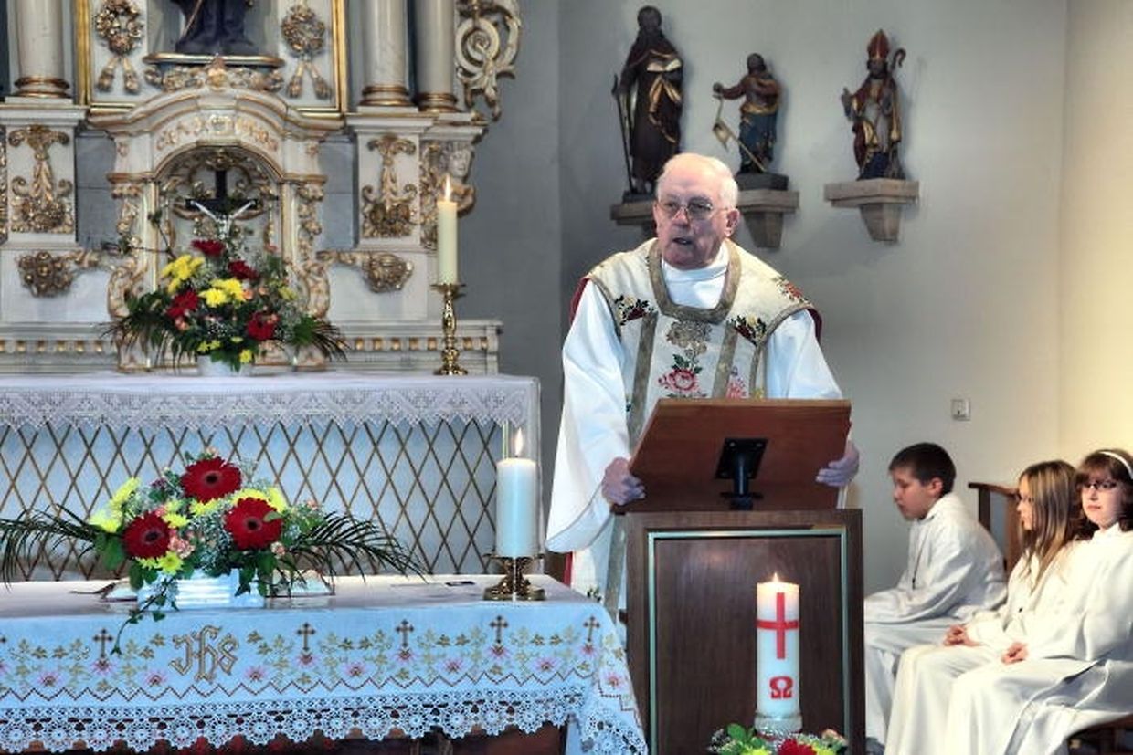 Aloyse Walsch dankte allen, die auf irgendeine Art die Kirche unterstützt haben, jedoch nicht ohne an den Einsatz der Eltern und Großeltern zu erinnern. Einen ganz großen Dank richtete der Präsident an Dechant Emile Glesener für das feierliche Hochamt, aber auch für alle anderen Messen, die Dechant Glesener über all die Jahre, sogar noch nach seiner Pensionierung, in Bigelbach zelebriert hat.