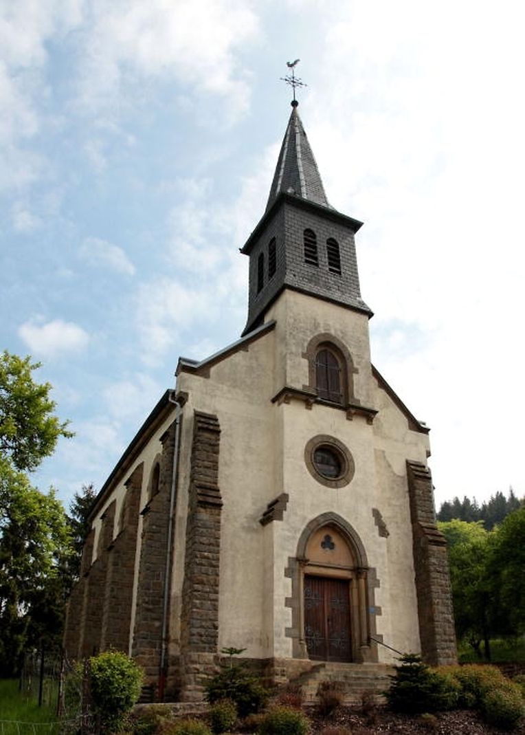 Im Jahre 1906 begann der Bau der Kirche auf einem von einer Privatperson gestifteten Grundstück. Die Steine dazu stammen aus einem Steinbruch aus dem „Bigelbaacher Bësch“. Bigelbacher Einwohner hatten 3 000 Franken für den Bau gespendet, und Pfarrer Majerus hat über die Kirchenfabrik nochmal 6 000 Franken dazugelegt. Da der Bau aber insgesamt 12 520 Franken kostete, hat die Gemeinde unter Bürgermeister Nic Reyland die restlichen Kosten von 3 520 Franken übernommen, die über die Jahre von den Bigelbachern jedoch zurückerstattet wurden.