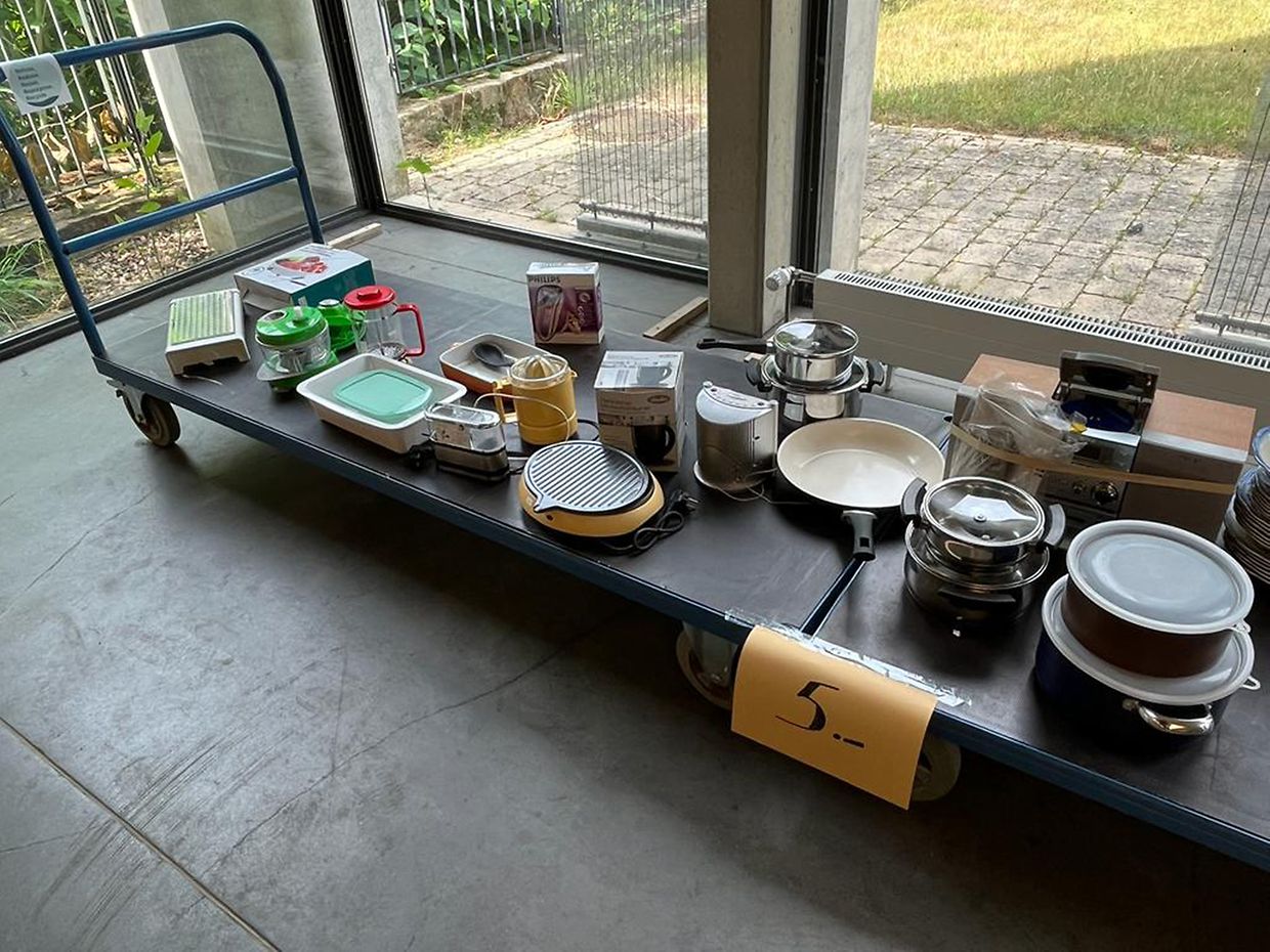 Porzeläin, Glieser, Bicher, Spillsaachen, klengen Elektro, Sammeltasen, Léngent, kleng Miwwel, Biller, Déco,a vill Extraes …