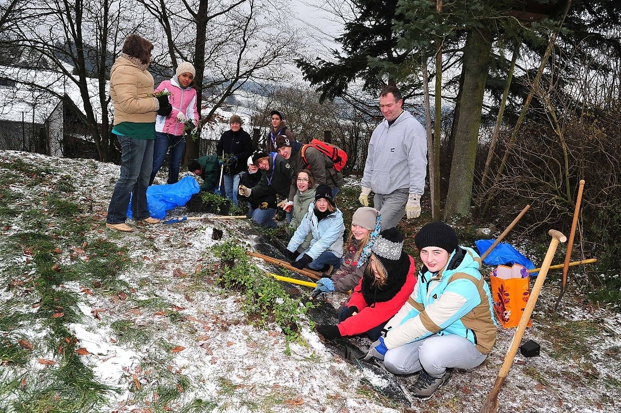 Ungefähr 40 Kinder und Jugendliche pflanzten Sträucher hinter dem ehemaligen Formationszentrum der „Lëtzebuerger Guiden“, die 1994 mit den „Lëtzebuerger Scouten“ zum Verband LGS fusionierten. Außerdem erlebten die Pfadfinder(innen) aus drei verschiedenen Altersstufen (Wëllef, AvEx und CaraPio) eine ganze Rallye aus Posten mit Spielen nach der Methode der Waldpädagogik.