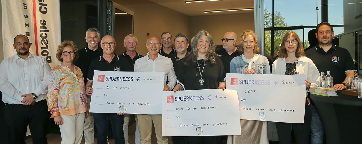 An esou konnte kierzlech bei enger klenger Feier am Porsche Zenter Roost insgesamt 15.000 € verdeelt ginn.