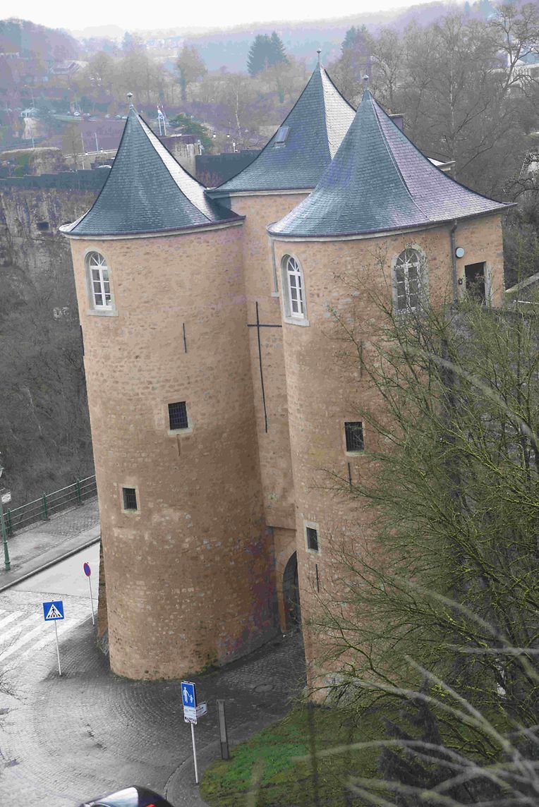 Dono laanscht de Pescatore erof bei d'Drei Tierm, Richtung aalt Geriicht, iwwert de Bock, vun wou een eng super Vue huet op d'Geburtshaus vum Robert Schuman "de Papp vun Europa" a Clausen just hannert dem alen Deitsche Zaldotekierfech vum 1. Weltkrich, um Wee fir op de Kirchbierg.
