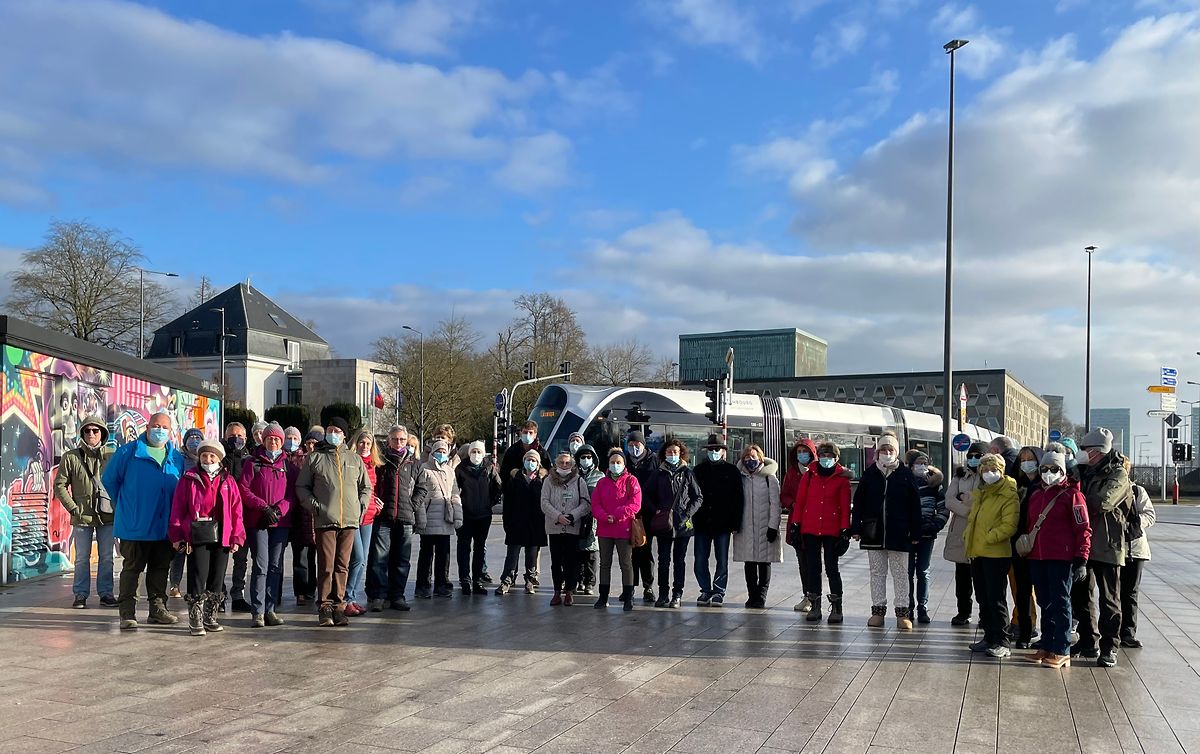 Et as um Glacis lassgaangen mat enger 40 Interesséierter (2 Gruppen mat jeweilegem Guide vum LCTO) bei d'Denkmal vum Robert Schuman.